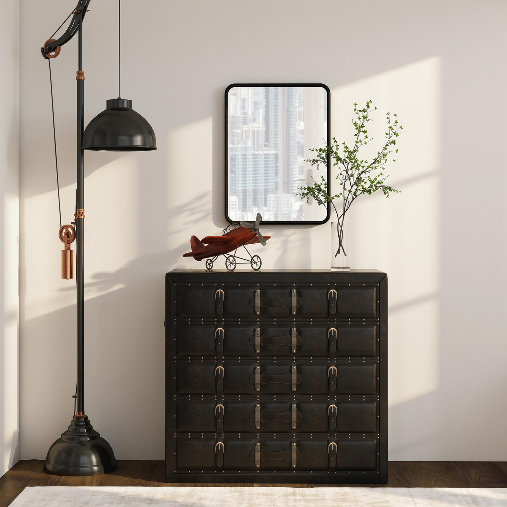 Features: - Features a sleek black metal frame, adding a timeless modern touch