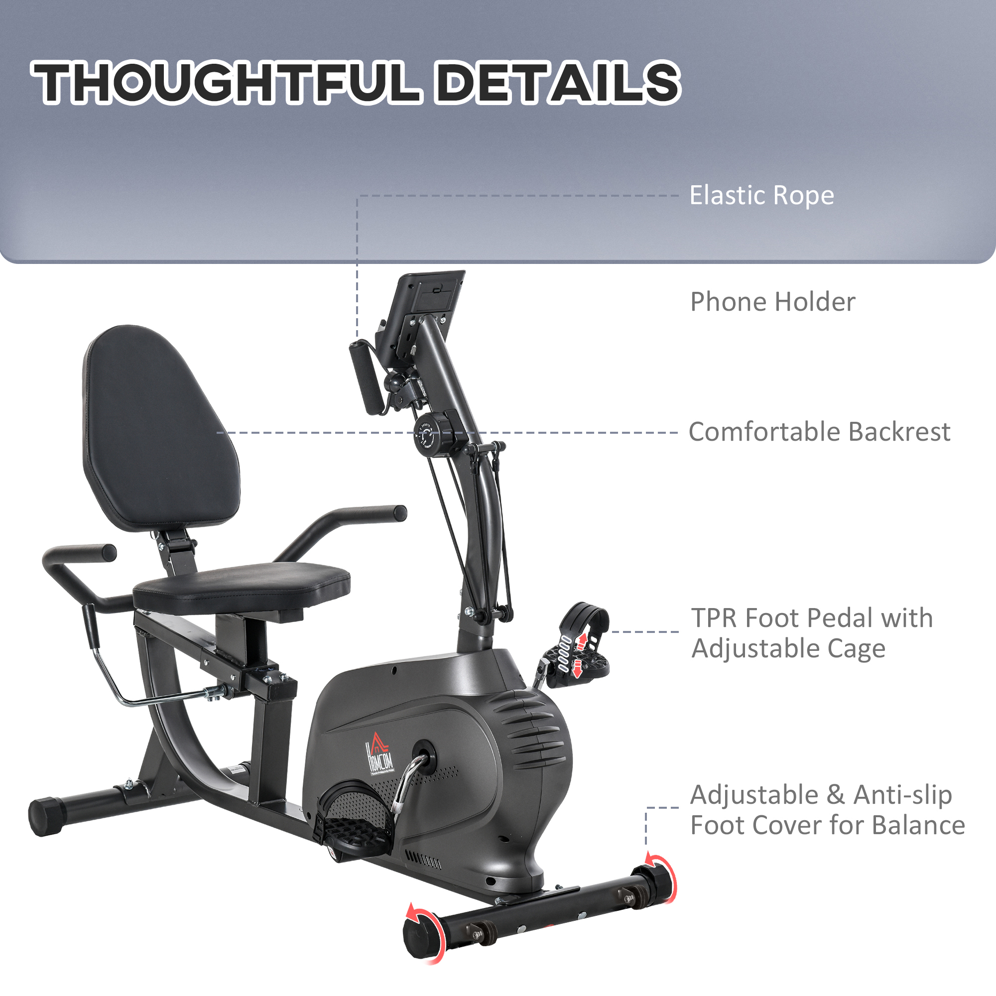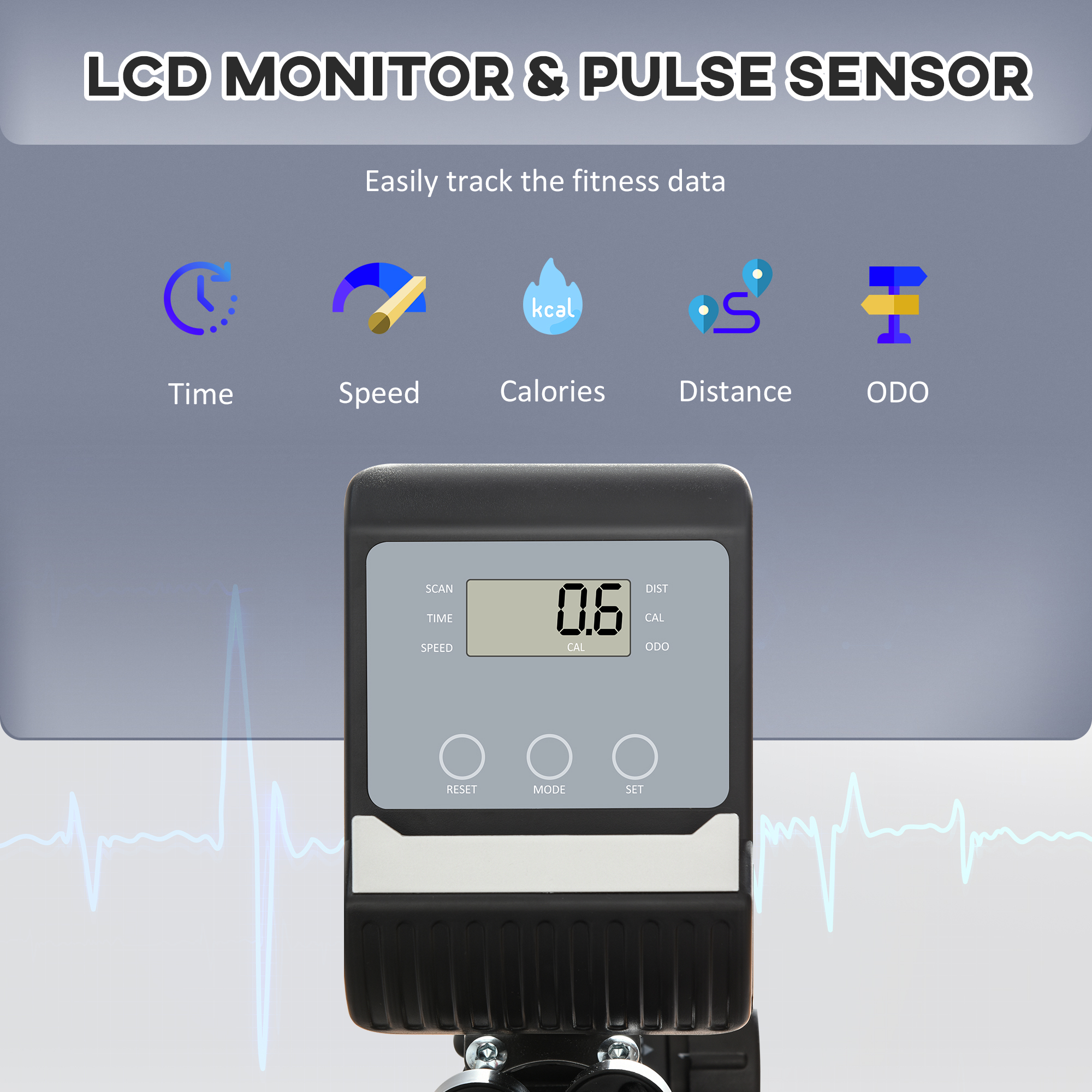 Exercise anywhere with the HOMCOM stationary bike – no electricity needed. The LCD monitor lets you track time, speed, calories and distance, keeping you on top of your goals. Customise your workout with an adjustable seat and eight resistance levels. Built with a strong steel frame, it supports up to 110 kg for stable and safe home workouts.