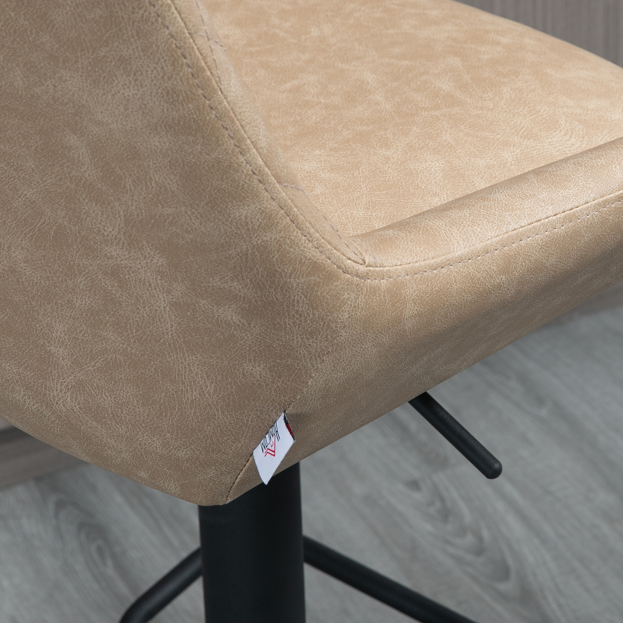 A stylish look for your kitchen dining spots with these HOMCOM bar stools. Faux leather upholstery for a beautiful look. Padded seat and high back to keep you comfortable and supported. A metal base for strength and keeping you supported, the height is adjustable between 63-83cm: set to a level best for you. Completed with a lower footrest.