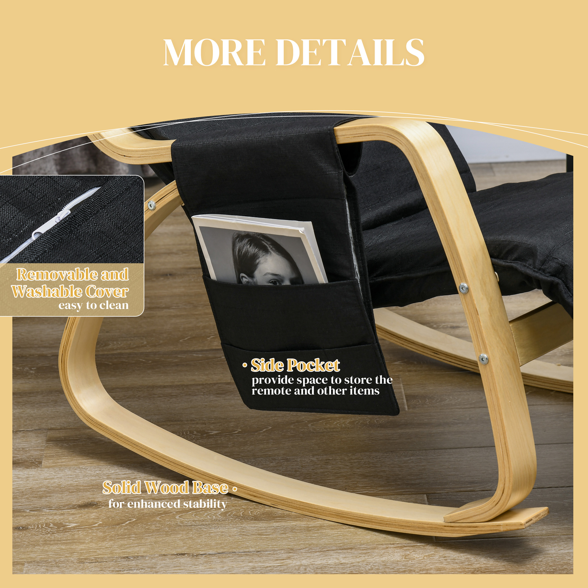This HOMCOM new-look living room armchair is designed with comfort and style in mind. Made from birch wood, the frame means a strong and supportive core, formed into a gently-curved shape which allows it to rock forwards and backwards. It features a five-level adjustable leg rest: set a position you want easily. The padded seat keeps you comfortable, finsished with a side pocket for close-by storage.
