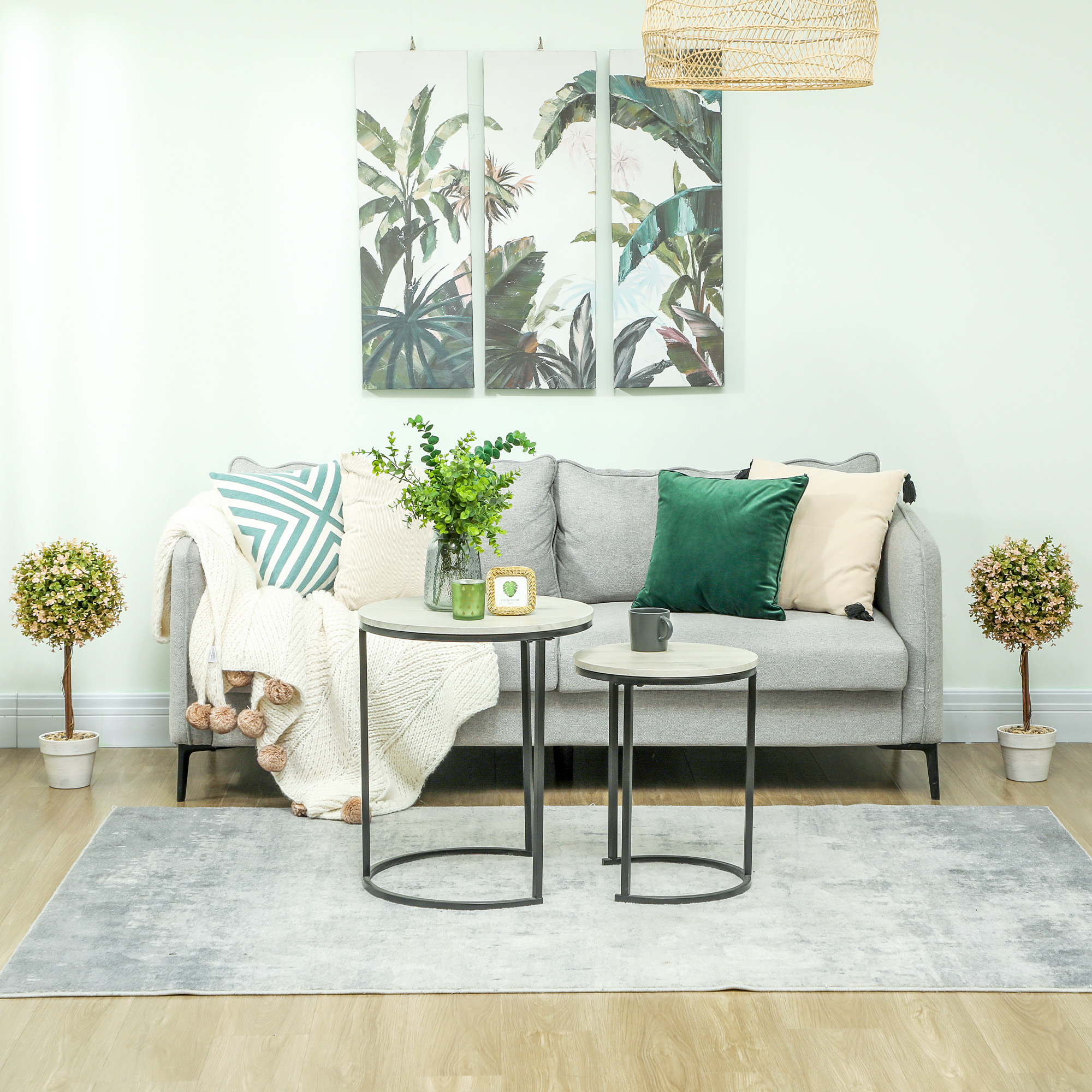 Features: - Set of two with charming murraya plant design enhances decor