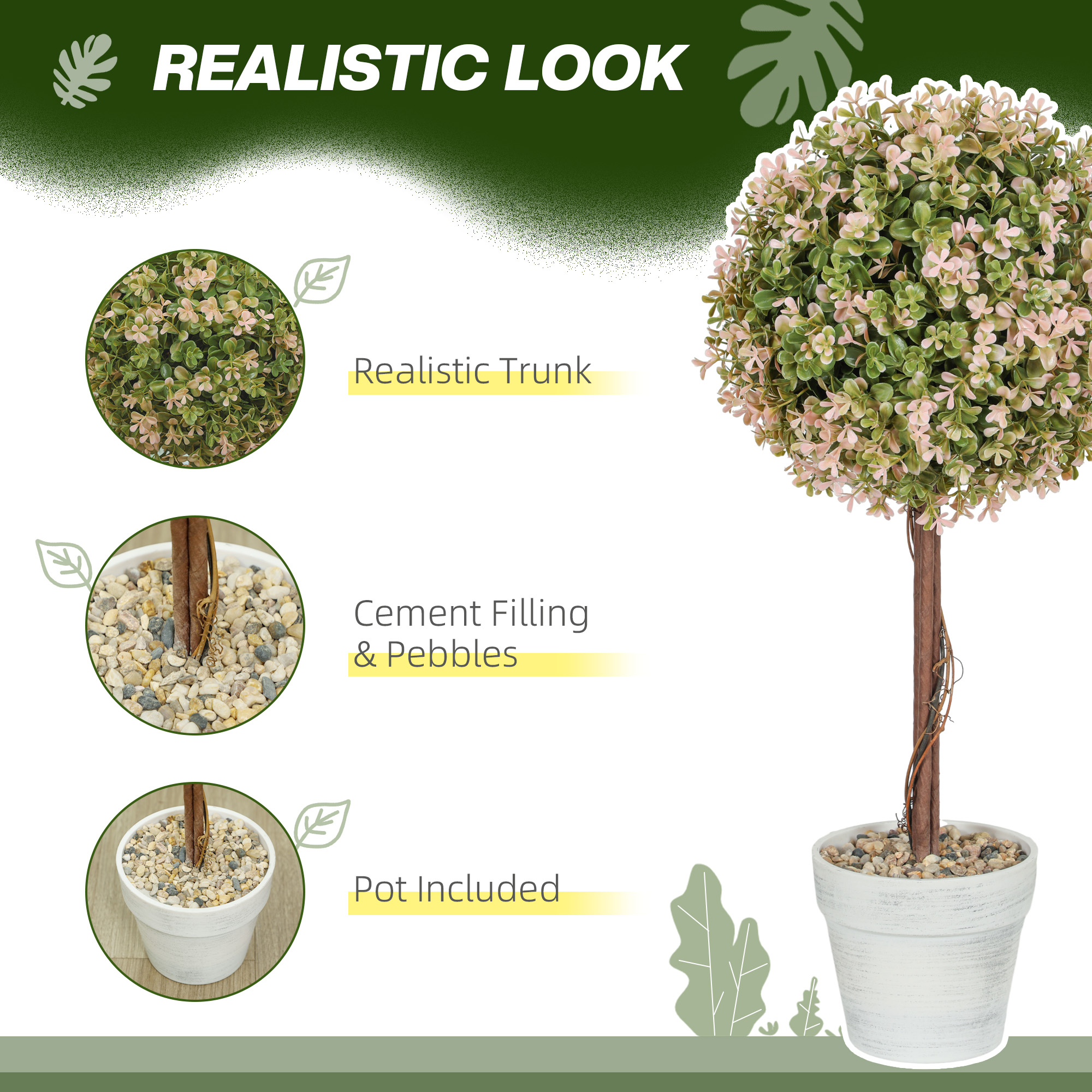 Brighten up your space with the HOMCOM set of two decorative artificial plants, featuring a delightful murraya plant design. These UV-protected faux plants are great for both indoor and outdoor settings, ensuring year-round beauty with minimal fuss. The natural texture and included pebbles enhance their realistic appeal, making them a charming addition to any decor.