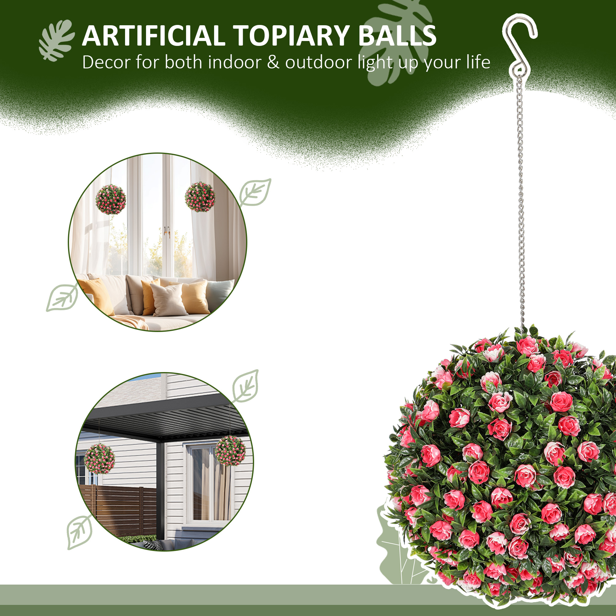 Brighten your space with HOMCOM's set of two artificial topiary rose balls, a delightful addition to any décor. These faux plants, featuring 202 leaves and 202 flowers each, boast a natural texture for an ultra-realistic look. UV-protected and suitable for both indoors and outdoors, they promise vibrant charm with minimal upkeep. Great for lovers of artificial plants outdoor or indoor!