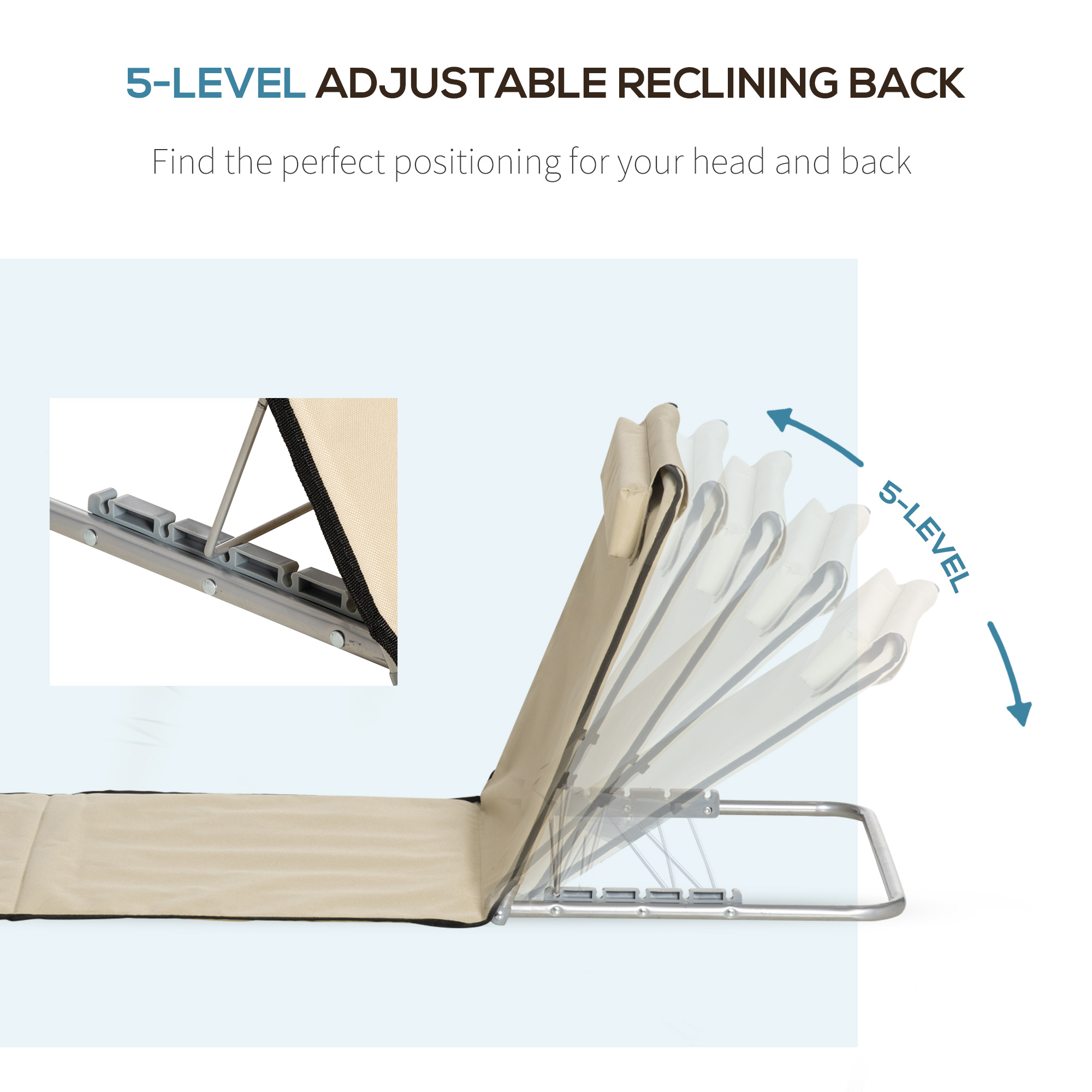 - Five-angle adjustable back, allows you to set to a level which is most comfortable for you