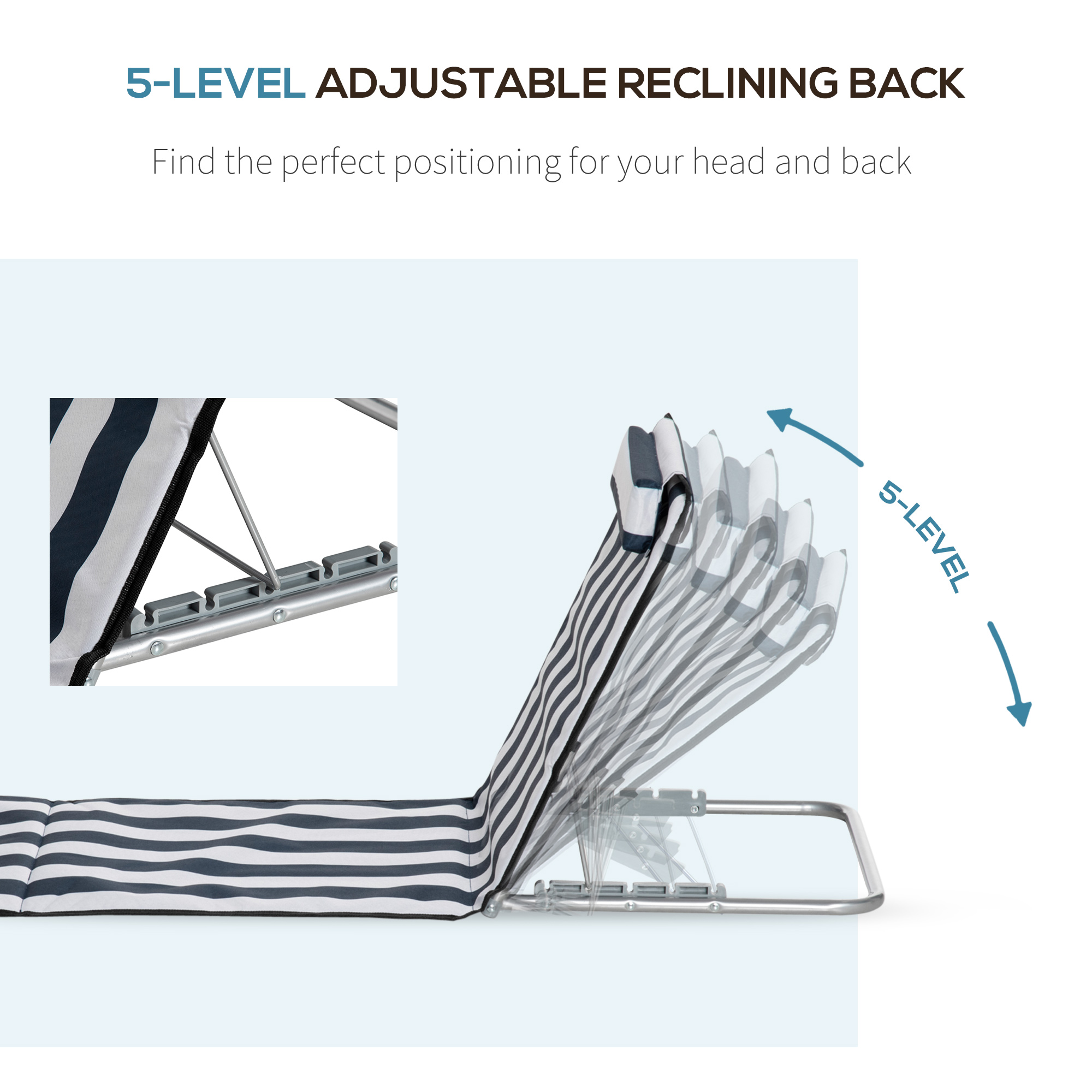 - Five-angle adjustable back, allows you to set to a level which is most comfortable for you