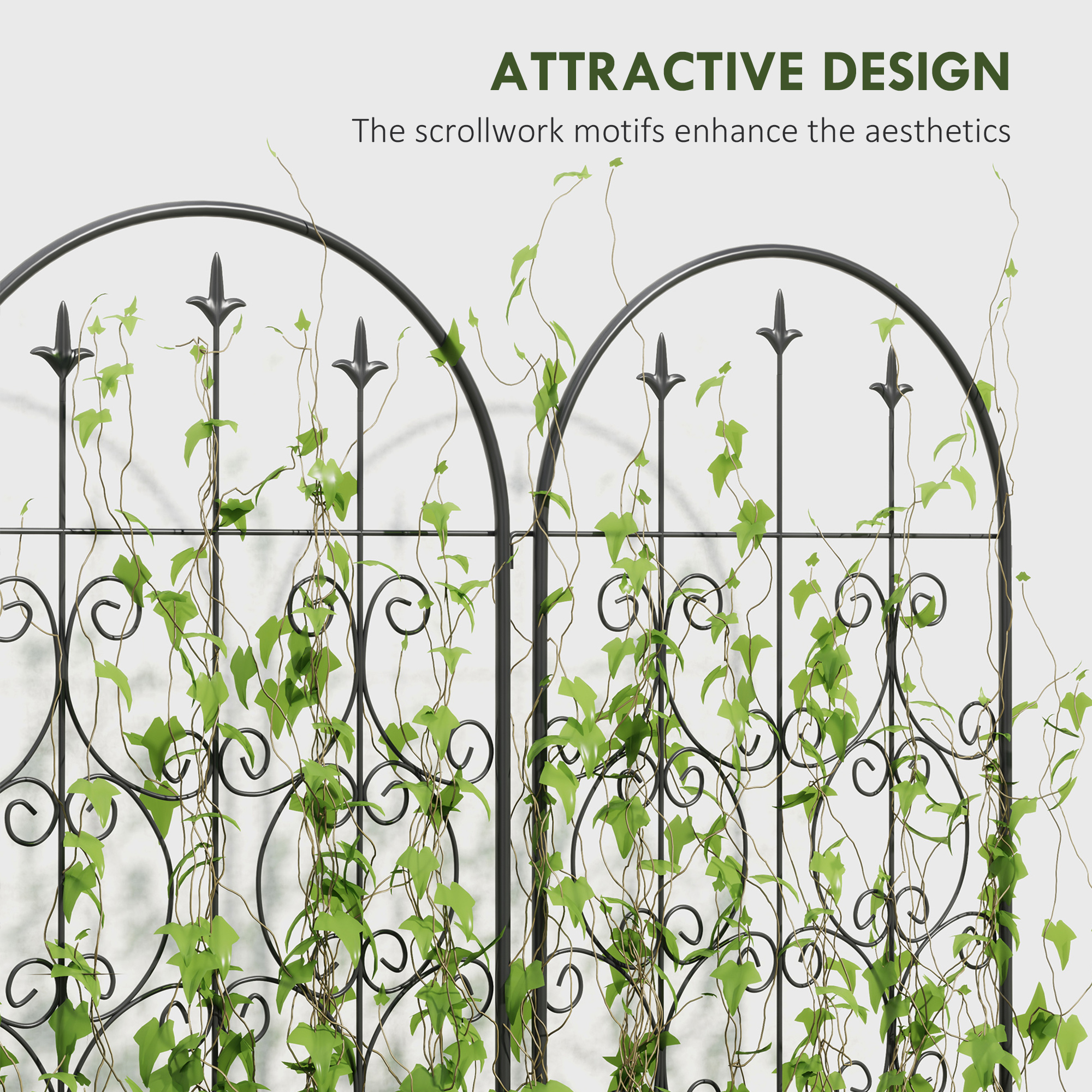 Transform your garden into an enchanting oasis with the Outsunny metal trellis. The two trellises, adorned with delicate scrollwork motifs, offer lots of space for climbing plants and double as charming privacy panels. Crafted from weather-resistant, powder-coated metal, they promise lasting support and easy ground insertion. The plant supports for garden are great for gardeners who wish to add a touch of elegance while providing practical plant supports.