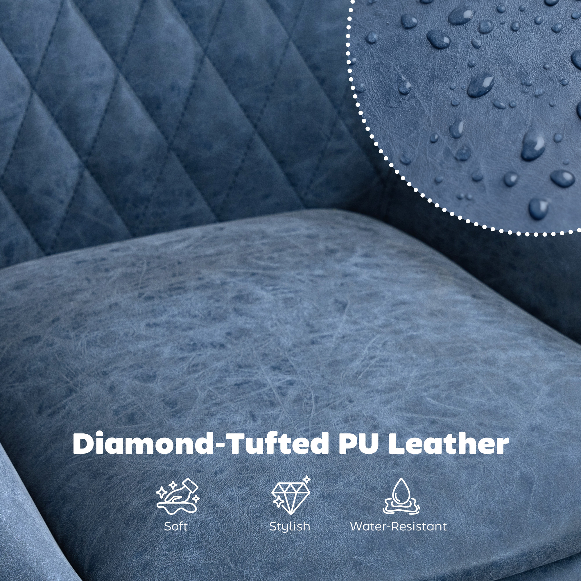 - Faux leather upholstery with diamond tufting for cool style