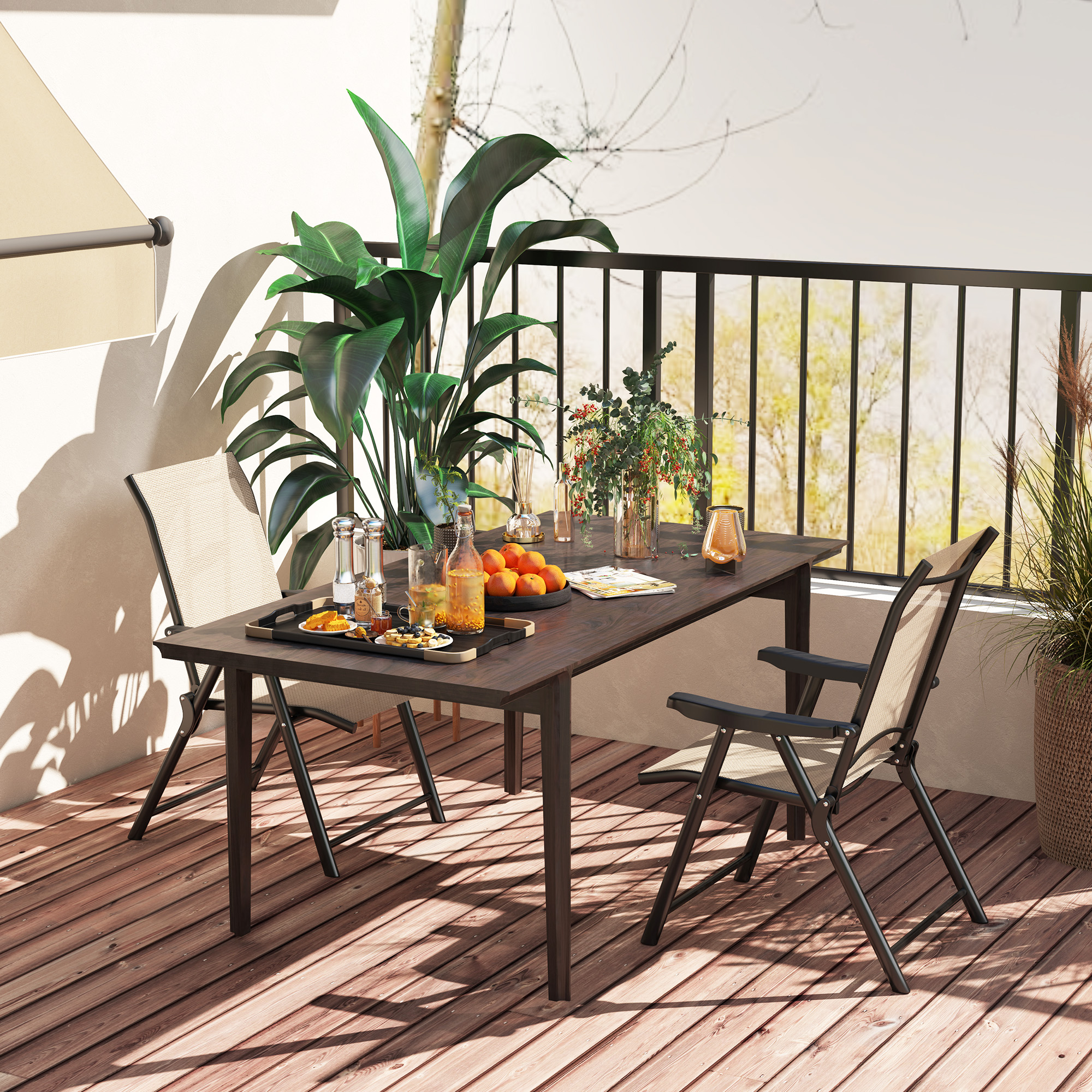 An essential set for garden and outdoor spaces - these two Outsunny outdoor dining chairs. With 63 cm high backs and armrests for support, the breathable mesh fabric seats hold you comfortably. Using powder coated steel frames for a strong core, these chairs are foldable - carry around and store whenever you want