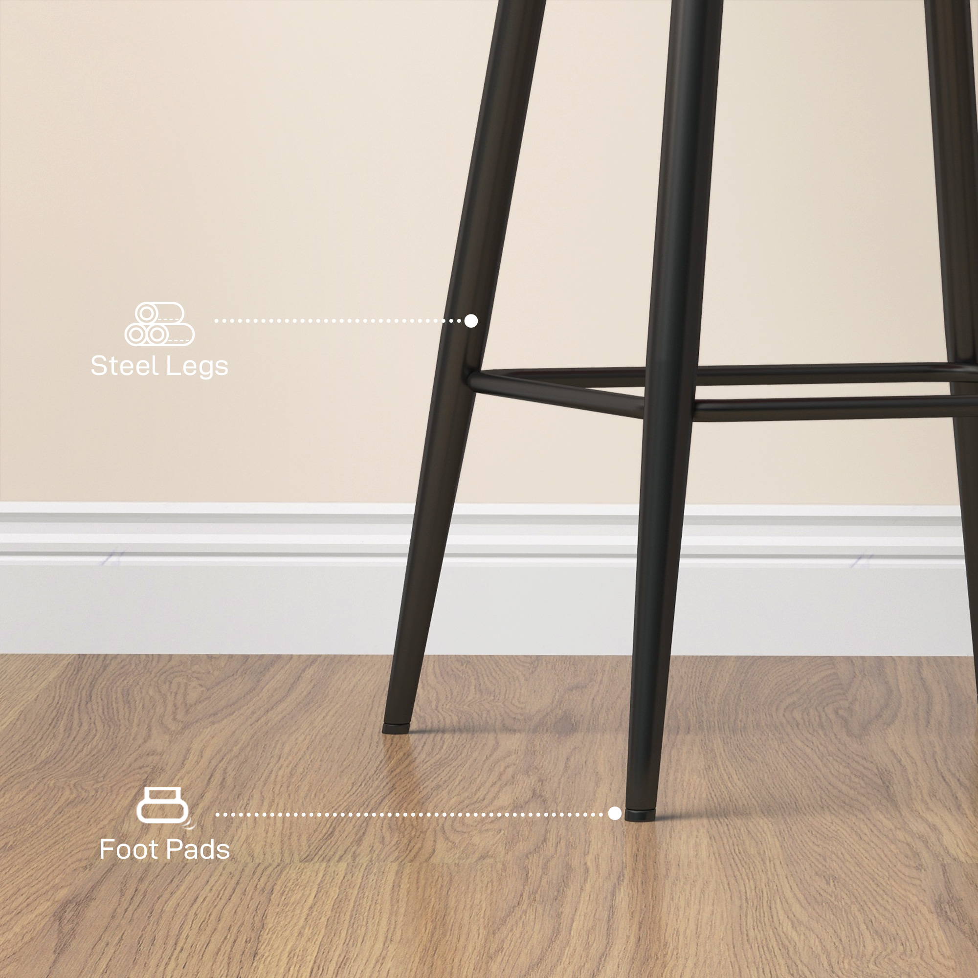 These two perfectly plush bar stools with backs, from HOMCOM, will sprinkle just the right amount of elegance into your home. The tub-shaped seats with high backs and armrests give you plenty of sitting room, wrapped in beautiful velvet-feel upholstery; paired with the padded seats, these stools for kitchen counter are very comfortable. They're fitted with metal bases for strong support - the bottom bars give the lower body a place to hold itself.
