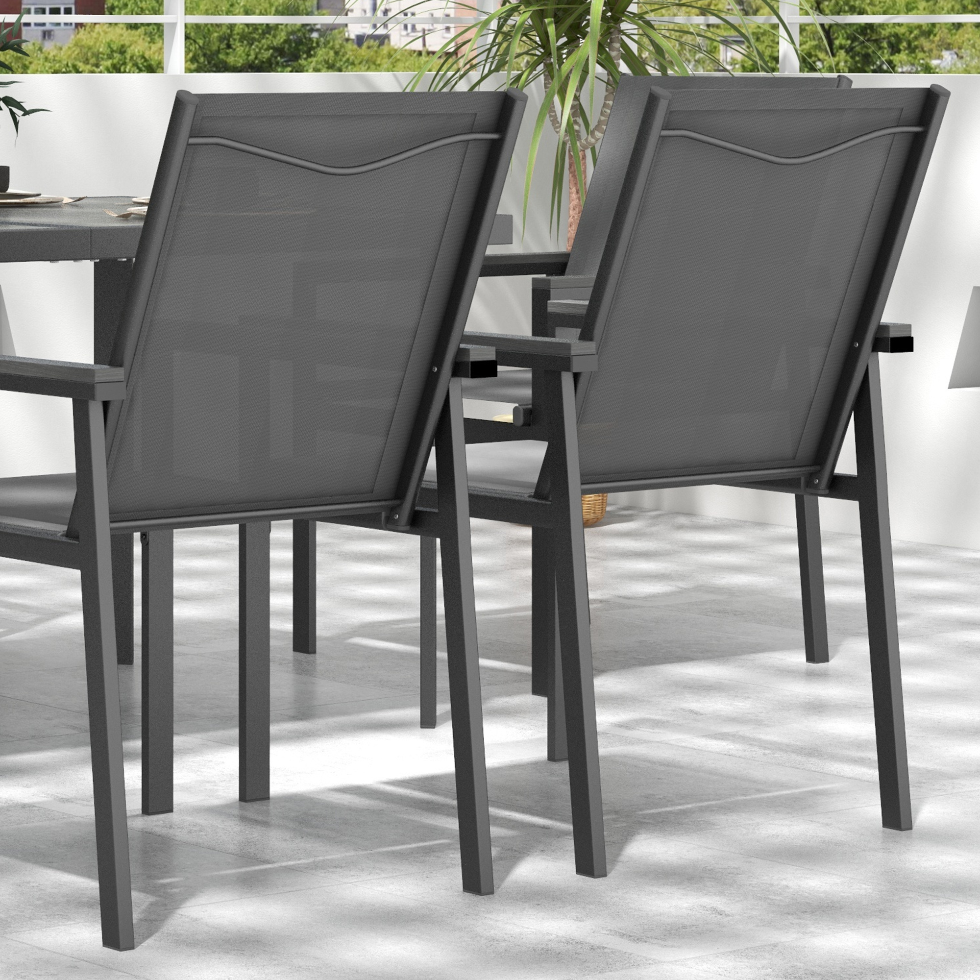 - Powder coated steel frames: strong, supportive garden table and chairs