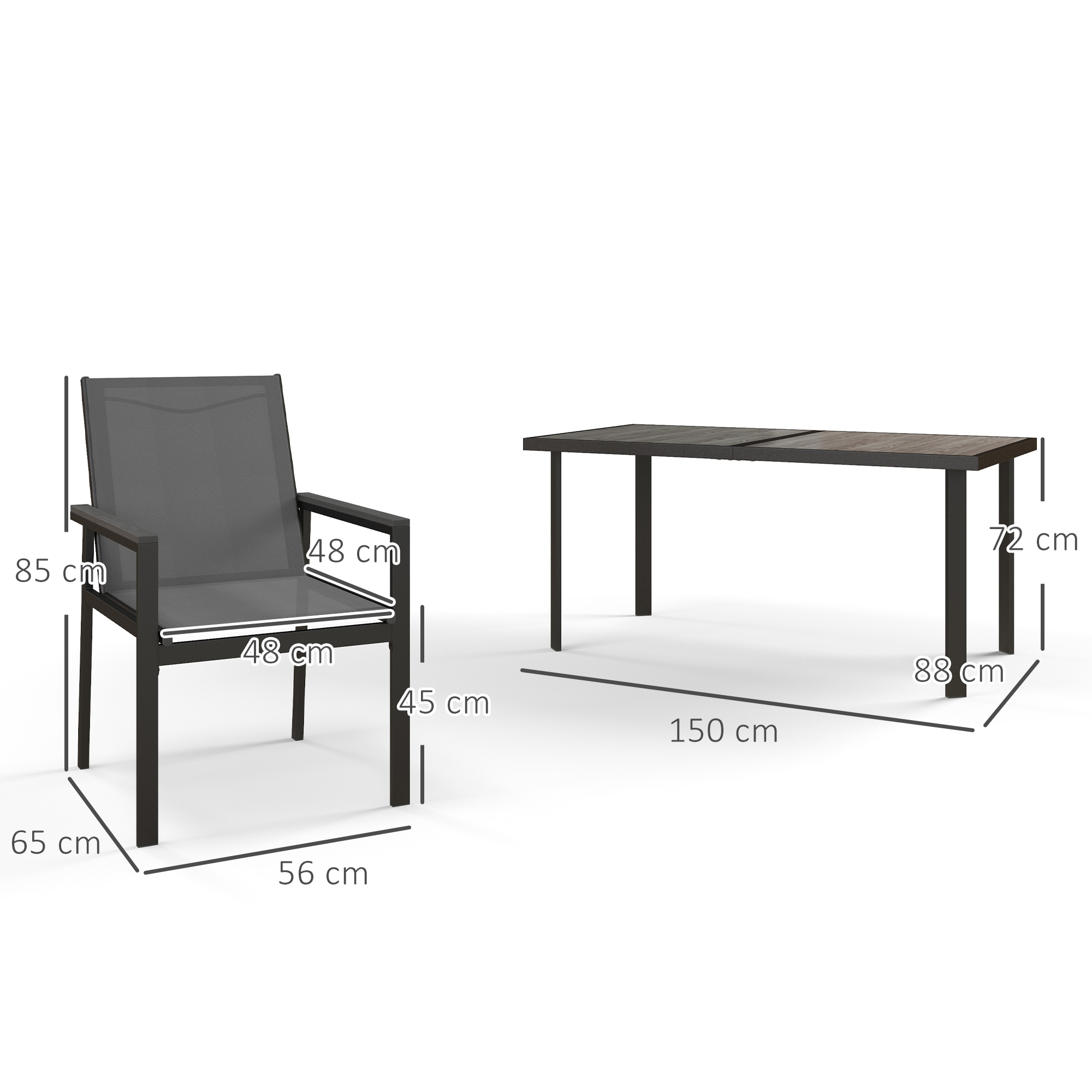 Enjoying weekend brunches and evening dinners outside - thanks to this Outsunny garden dining set. This outdoor furniture set comes with a rectangular dining table and six matching chairs for you and others to gather around. Powder-coated steel frames mean a strong garden furniture set. The wood-effect tempered glass top on the table means a sleek look and safe surface to dine from.