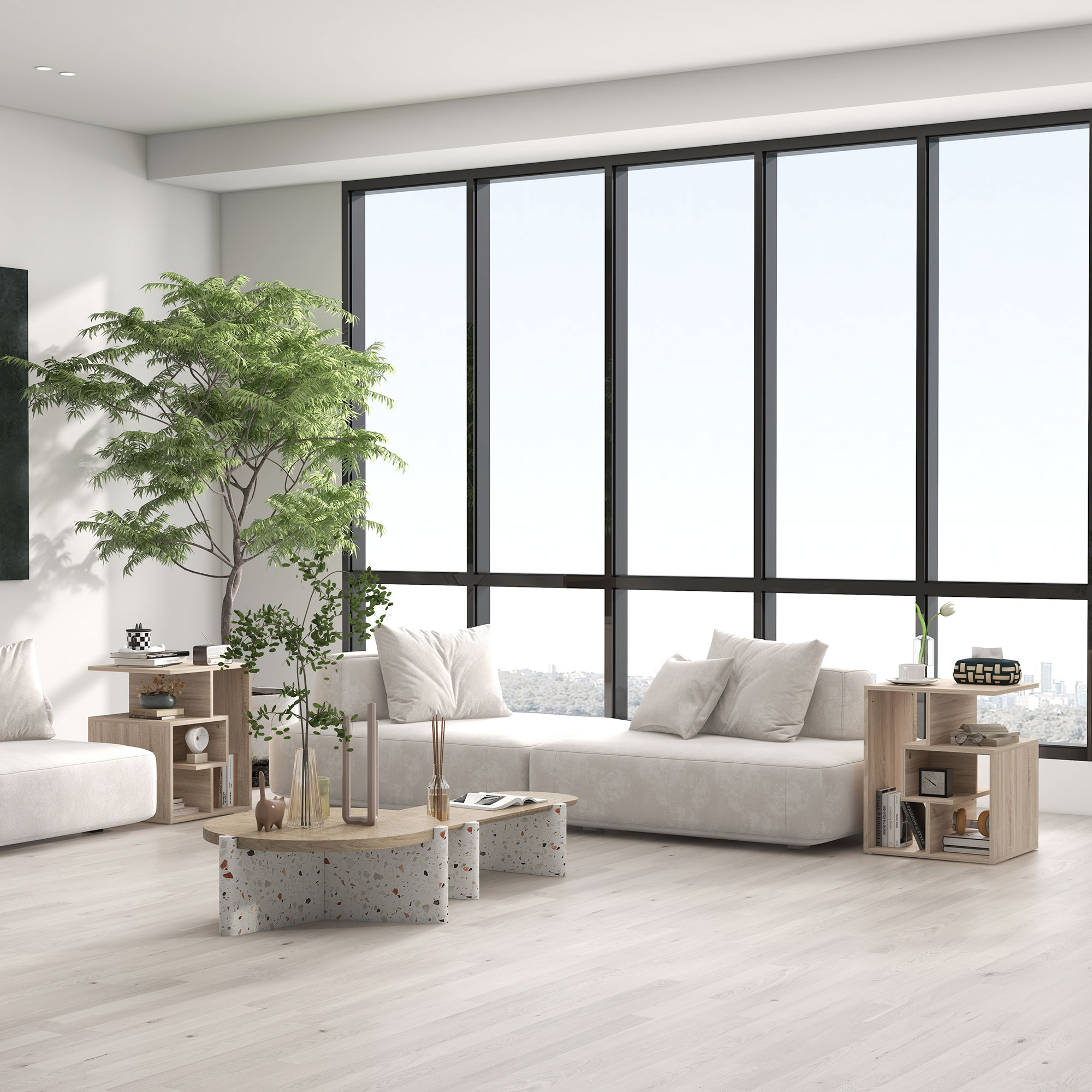 This three-tier small side table from HOMCOM is a great addition to any living room. It's made from particle board for durability, with a smooth surface to keep clean easily. This bedroom table, cut into a cubic shape, comes with three differently shaped shelves inside for a unique look - room for your books, magazines, newspapers and more. A compact size in a cool design, this is a great furniture addition for all home and office spaces.