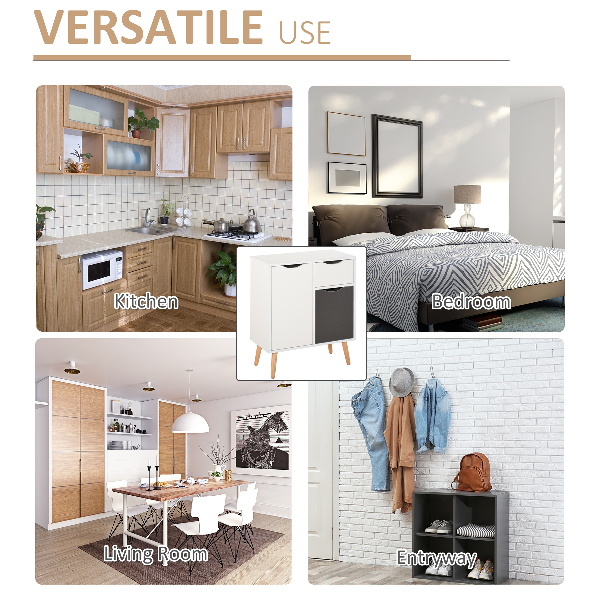 Features: - Cut-out handles on drawer and cupboards, easy to open and close
