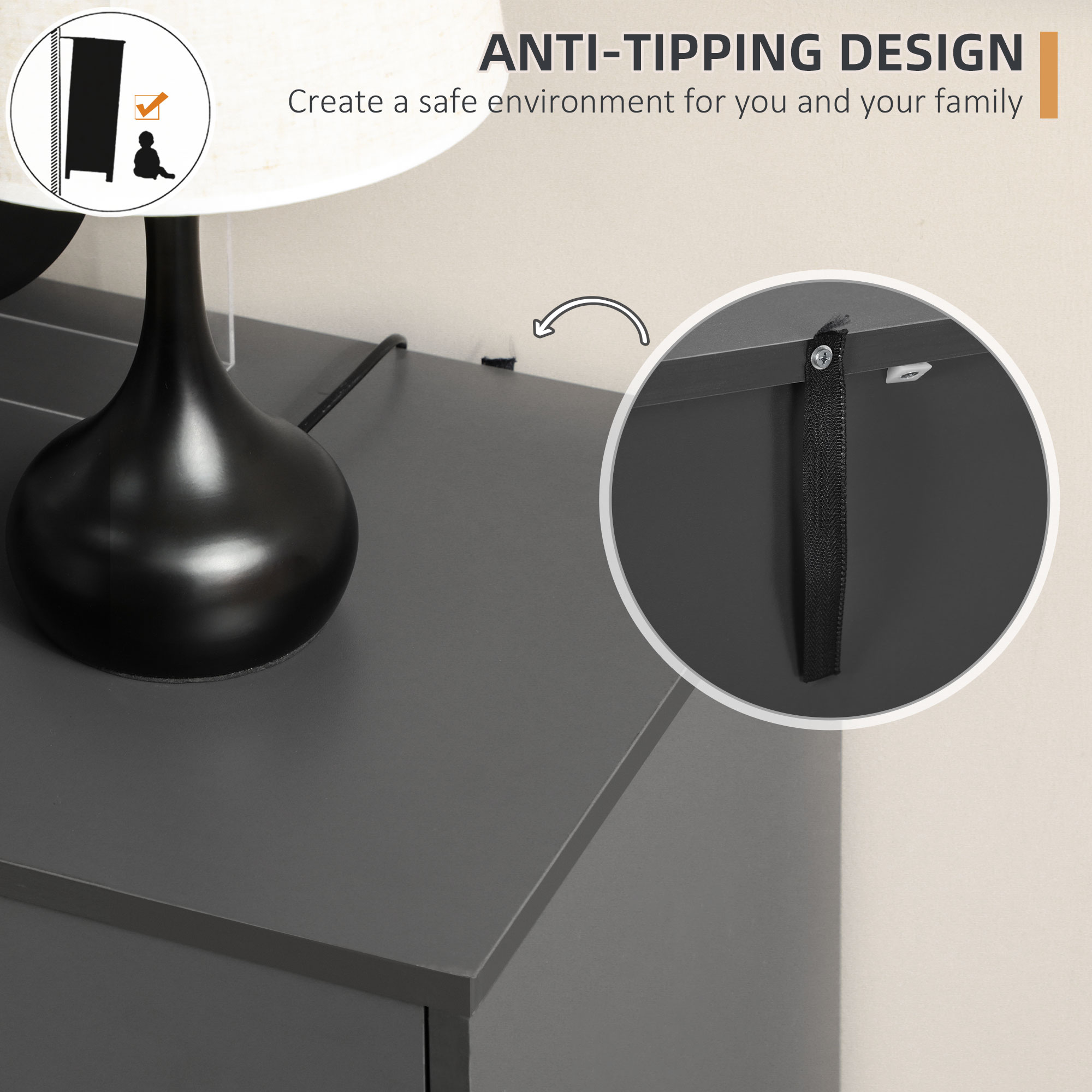 Make a statement, with just a touch of moodiness for the season ahead: look to this HOMCOM sideboard. It comes in a dark matte grey colour, with wood-effect details bringing a touch of the natural. Comes with two cupboards and three drawers - there's lots of room for keeping your space discreetly tidy. Cupboards come with adjustable shelves: great for when you want to store differently-sized items. Complete with anti-tipping straps for safety.