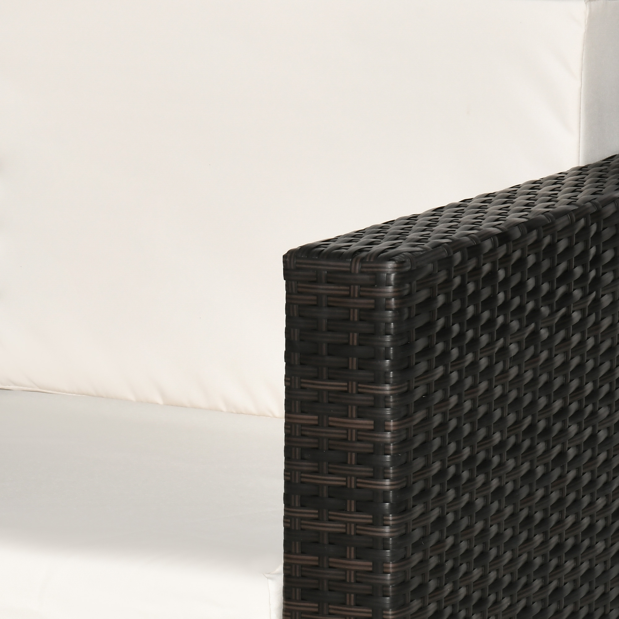 The comfy garden armchair from Outsunny. Made of a steel frame to prevent rust and damage outdoors, wrapped in rattan for easy cleaning and a mainstay in your garden furniture. Come with 10cm thick padded and plush cushions, as well as being water-resistant and having washable covers, with a high back and armrests for plenty of support—a great way to sit back and relax in the sun.