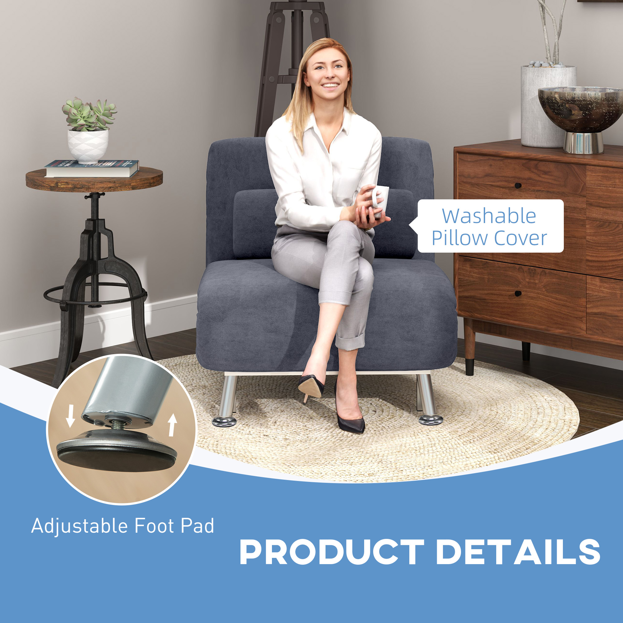Switch from sitting to sleeping in an instant, thanks to this bed chair from HOMCOM. Using steel for the frame, the chair bed is solid and tough, and a five-level back to adjust to a position best for you. Filled with thick foam padding and wrapped in velvet-feel upholstery for great comfort. This chair bed comes complete with a pillow for extra comfort and support. Now your guests will always have somewhere comfortable to sleep when they come over for the night.