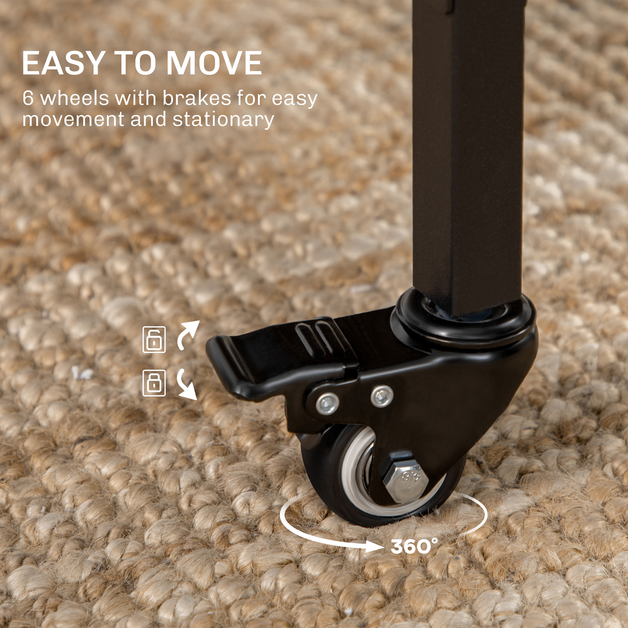 Make large unused tables at home a thing of the past. Choose this folding dining table from HOMCOM for an option that saves space when needed. Crafted into an expandable design, where both sides lift from the bottom; it creates extra surface room while dropping back down into a compact unit effortlessly. It comes with a middle shelf for discreet storage and six wheels to move easily. Completed with brakes.
