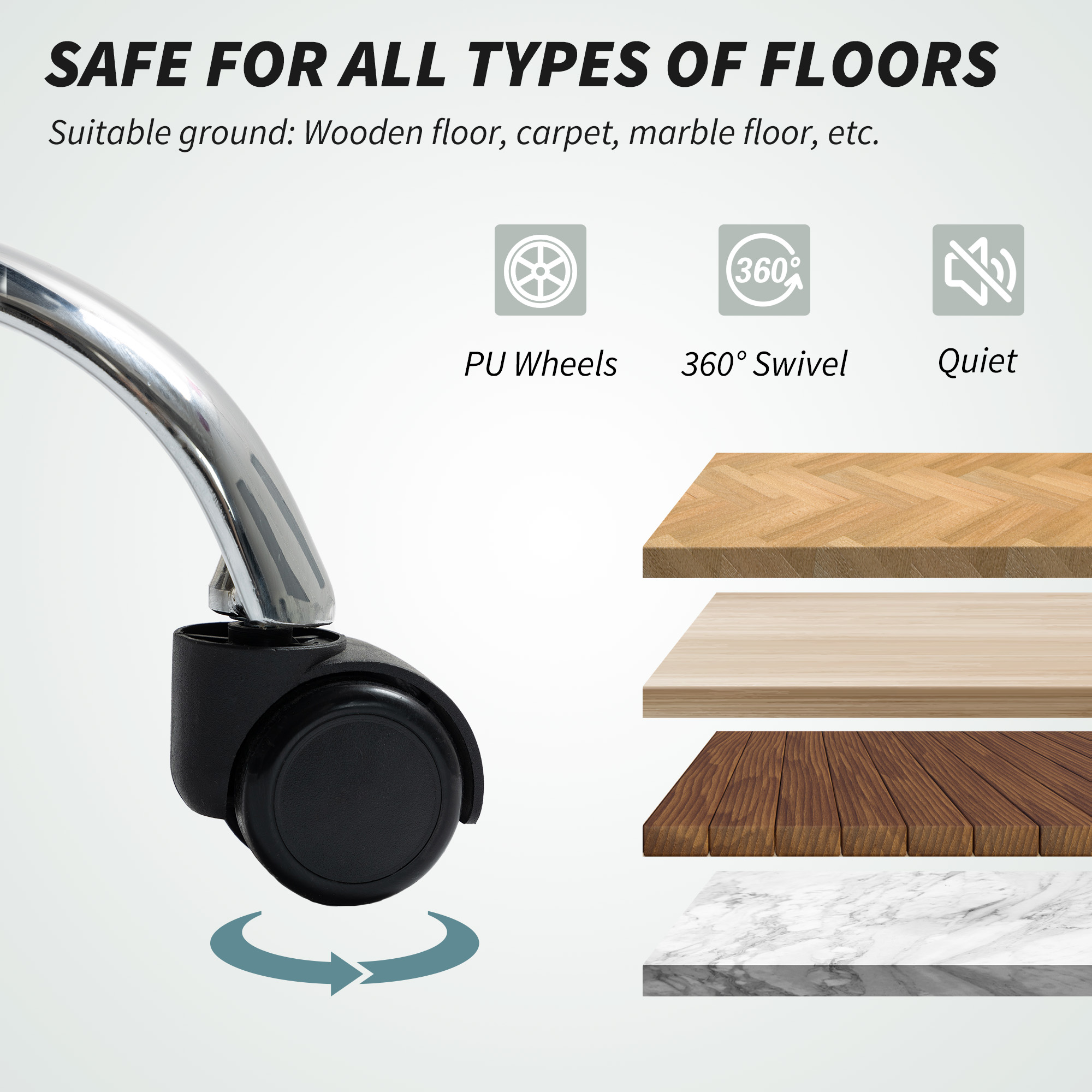 - Swivel seat and five wheels for plenty of free movement as well as protect floors