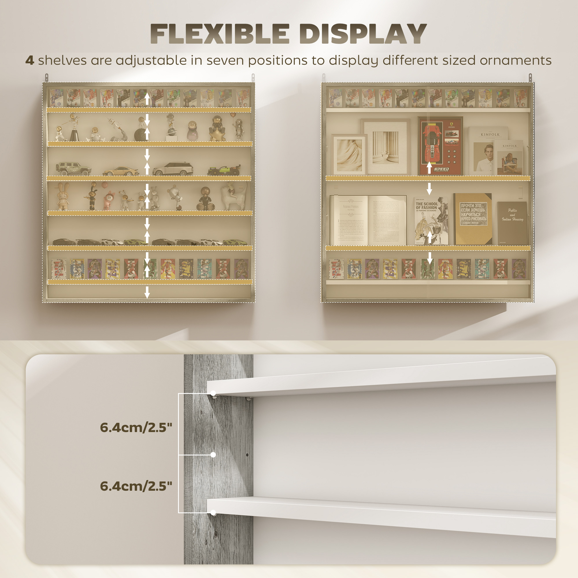 Display and organise favourite decorations with this HOMCOM wall display cabinet. It has six adjustable shelves, with 11 different positions, offering lots of space for smaller and larger items. Made from particle board, the structure is sturdy, and fitted with two sliding glass doors, keeping everything protected and allowing easy access. Easy to fix onto walls, this classic home furnishing will keep all your favourite pieces beautifully displayed.
