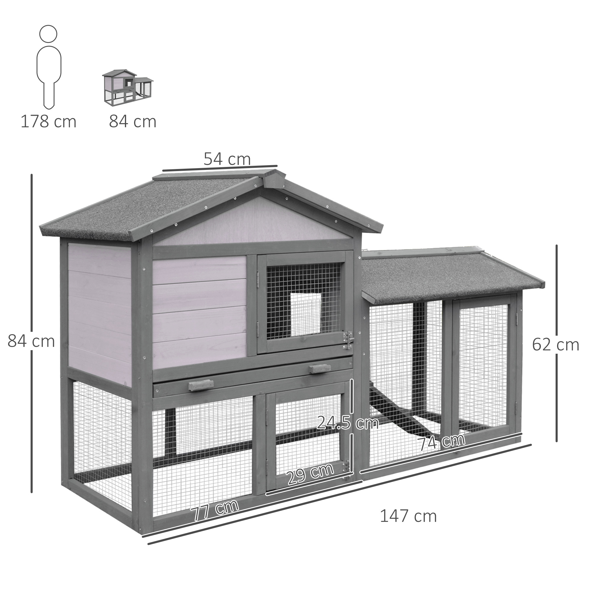 Create the perfect outdoor environment for your rabbit and other small pets they’ll love for years, thanks to this outdoor hut and house from PawHut. It’s formed of two parts: the main house and a run area, giving them the best of both worlds. Made from solid fir wood to ensure it’s tough and durable, the house features a main room to roam around freely, a ramp to get inside and out easily, a water-resistant openable roof and a pull-out tray for easily cleaning. It’s finished with a tall metal fence for the run, keeping them safe whilst they’re outside enjoying the fresh air. There is no tray on the bottom. If rabbit lives, it is recommended to put it on flat ground or add a bottom tray.