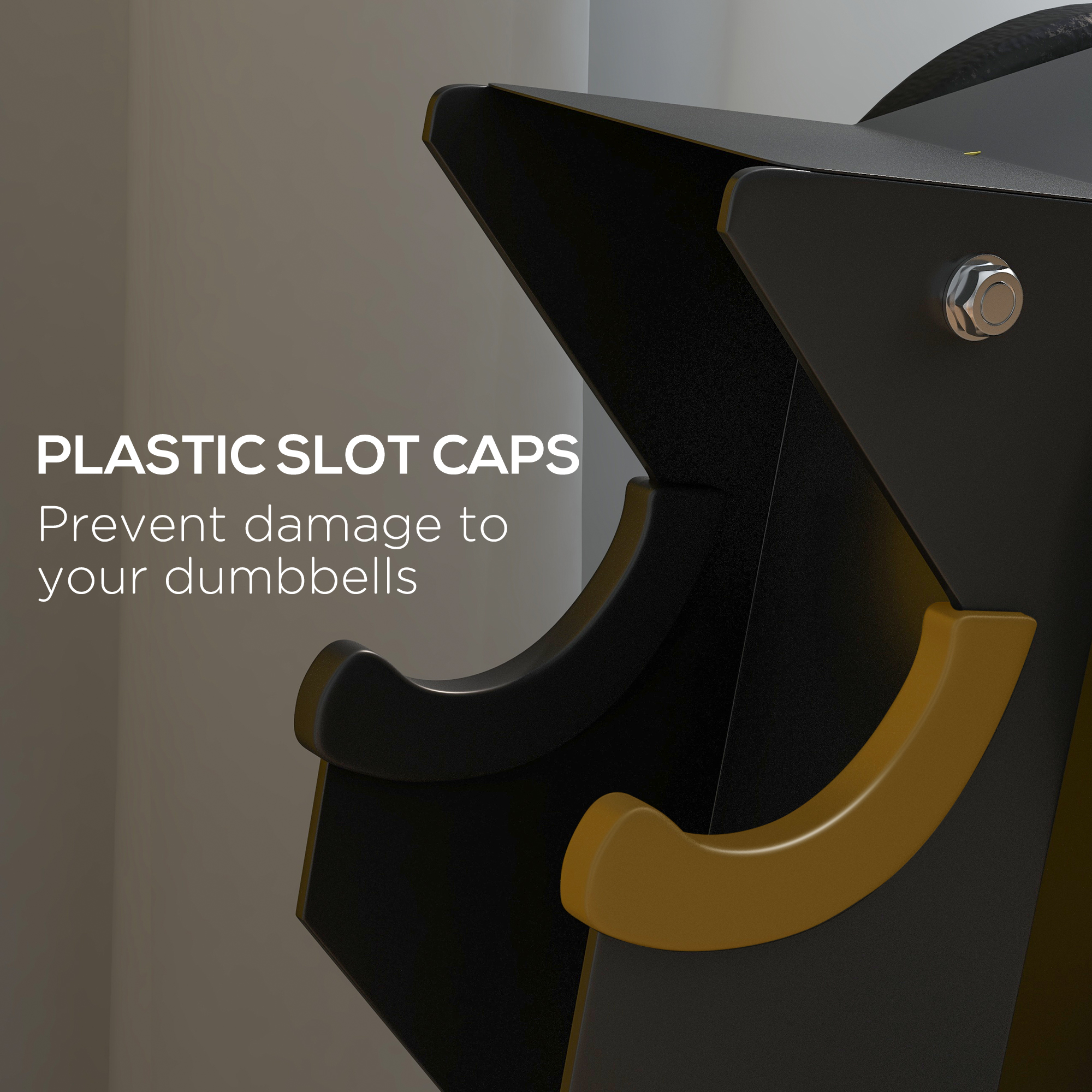 Organise your workout space with our SPORTNOW dumbbell rack stand with 6 rubber dumbbells. The durable steel rack includes 10 racks for five pairs of dumbbells, with wide feet to keep the rack balanced. A compact piece fits into the corner to save space. The delicate knurl on the dumbbell handles enhances essential grip and security during use. This set offers the ability to target specific muscle groups or attain a full-body workout, burn calories faster and increase endurance and strength.