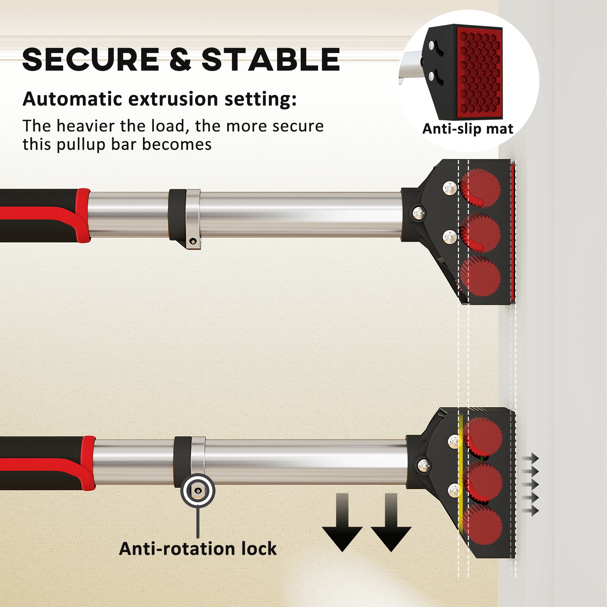 Effortlessly install by rotating the tube clockwise and adjust to fit doorways between 76-90cm. Experience secure workouts with its fall-proof design that strengthens under heavier loads, coupled with slip-resistant grips, making it the go-to chin up bar for safe, effective home exercise.