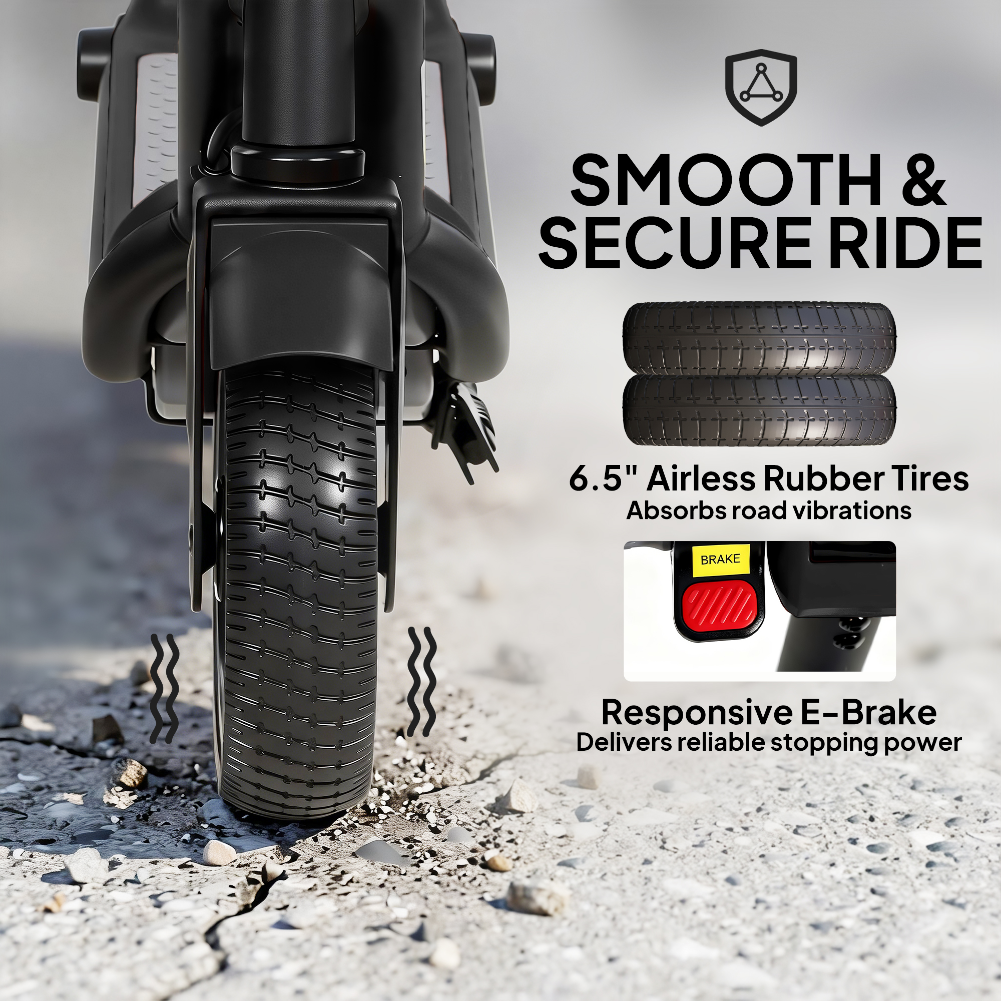 - Ride smoothly with its 6. 5" solid rubber tyres