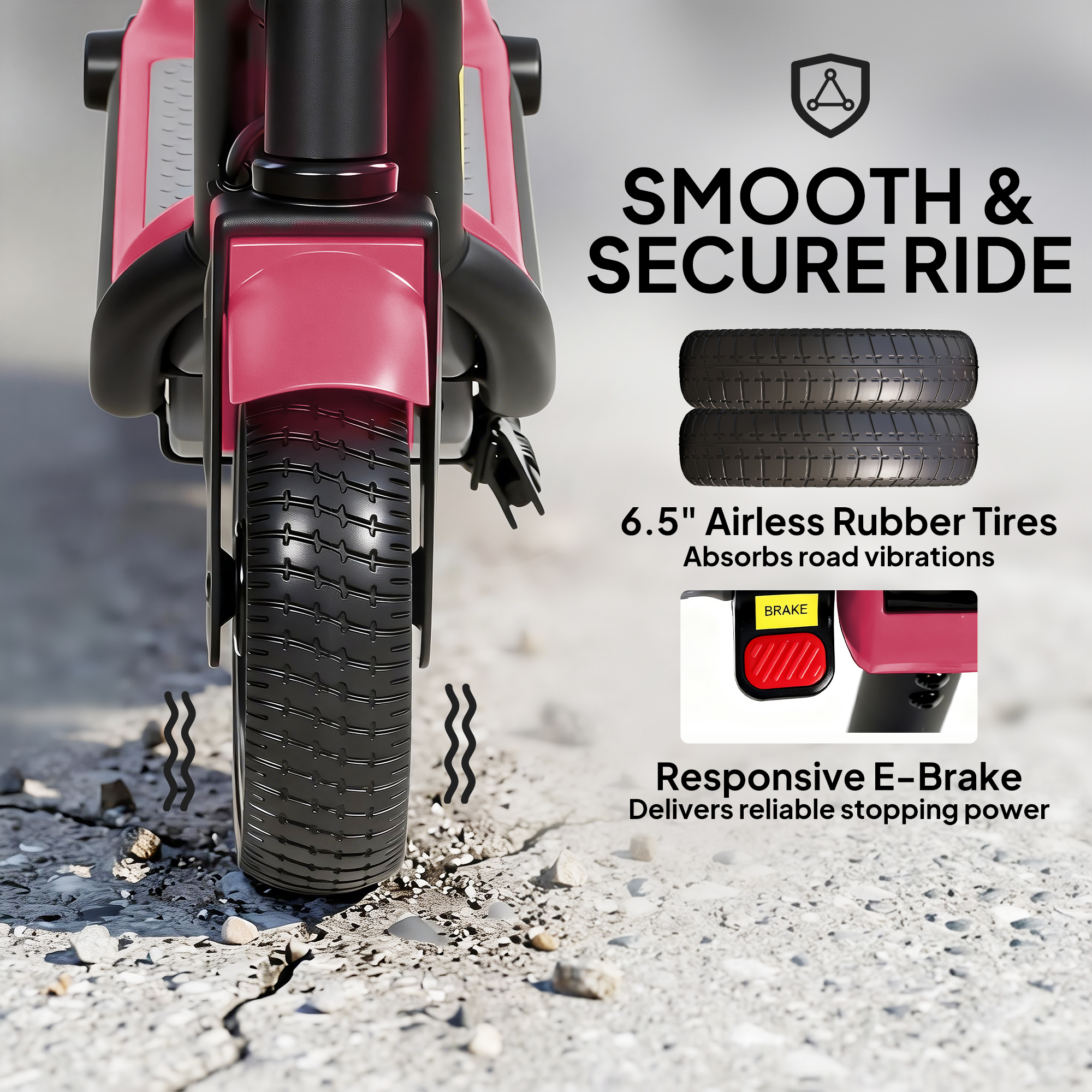 - Ride smoothly with its 6. 5" solid rubber tyres
