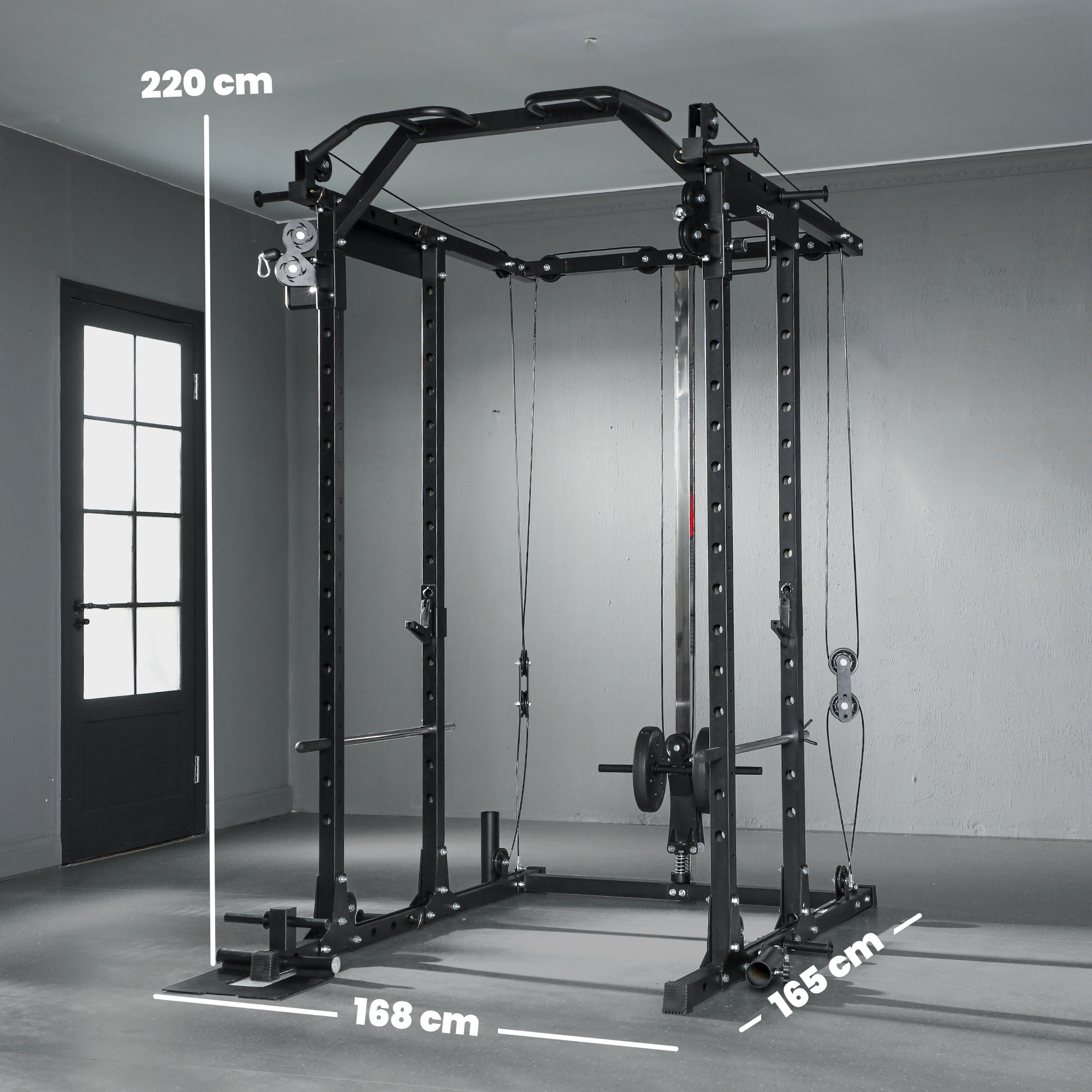 Maximise your home workouts with the SPORTNOW lat pull down machine. Great for squats, bench presses, pull-ups, pec flys, leg presses and more, it targets arms, chest, legs and back. Tackle each muscle group without ever needing a gym. Once finished, store the plates neatly on the bar's designated spots, keeping your space organised for the next session. Build strength and stay active, all from the comfort of your home!