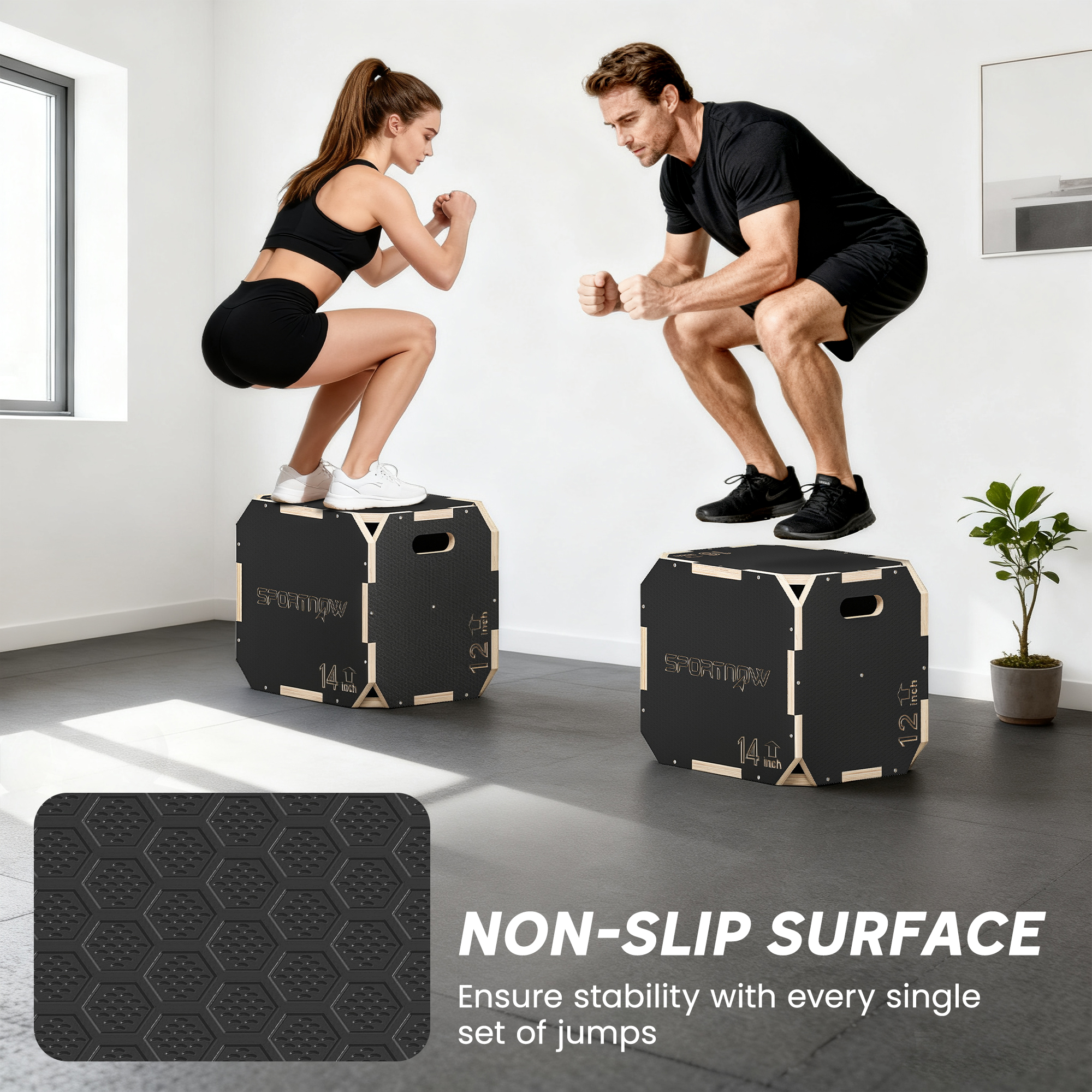 With the SPORTNOW jump box, enjoy a range of exercises like step-ups, box jumps and single leg squats to stay active at home or anywhere. The anti-slip surface provides stability, while the solid multilayer build offers safe support. Easily adjust to three height settings for your desired intensity. Featuring cut-out handles, it's convenient to move and use anywhere you like.