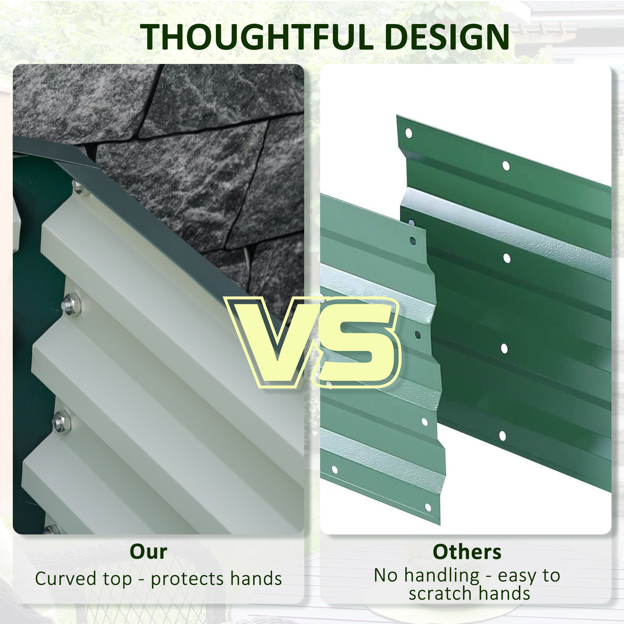 - Galvanised steel panels are strong and suitable for outdoor use