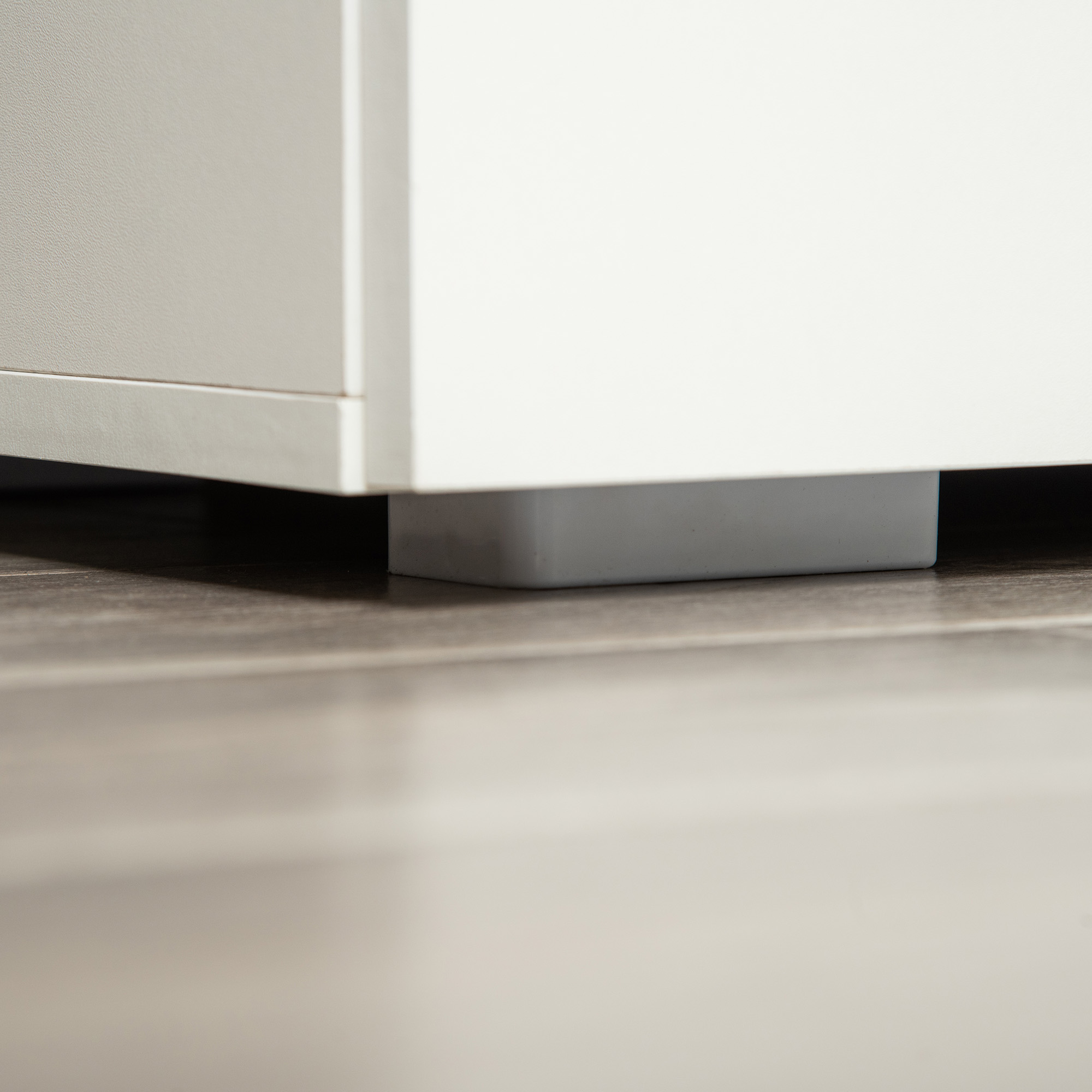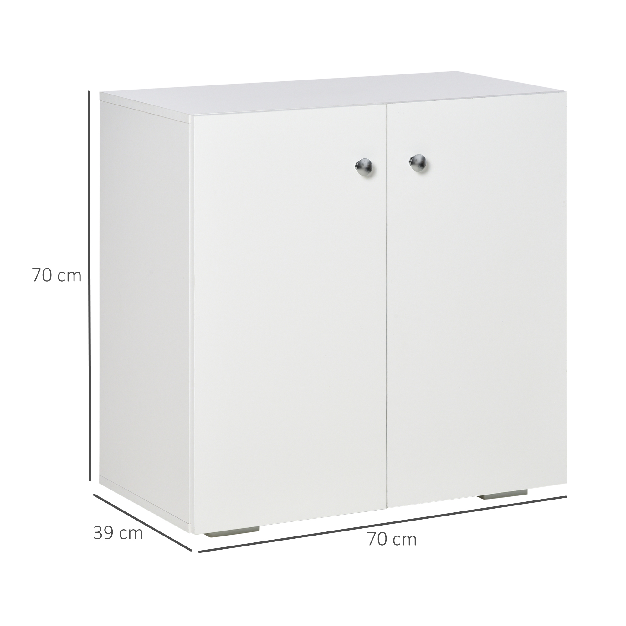 Keep your home organised with this stylish freestanding cabinet from HOMCOM. It can be used in any room, the two shelves will help it stay tidy and clutter-free. Use the spacious table top for displaying your favourite pieces, giving it a lovely decorative touch. Its all-white design can match any décor, whilst the particle board makes it easy to clean – maintaining its fresh appearance. A modern cabinet that's useful and fashionable; a great addition to your home.