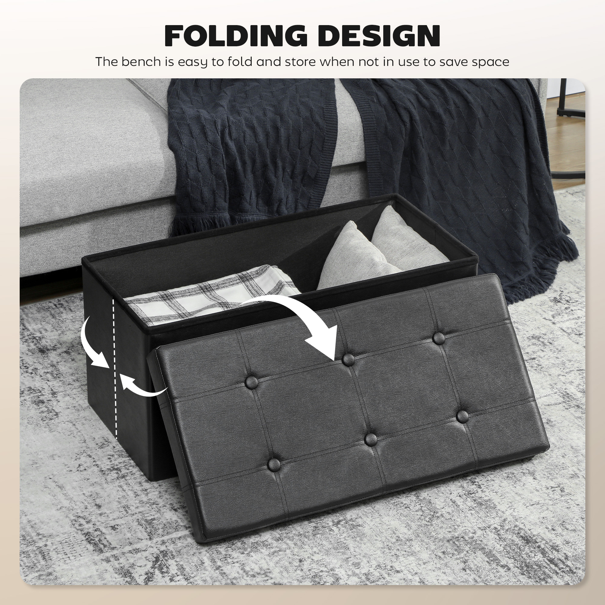 Struggling with clutter in a compact living space? The constant battle with scattered blankets and belongings can make your home feel chaotic rather than relaxing. This HOMCOM ottoman storage box offers a dual solution. It provides a generous 89L of space to create a tidy retreat. When not in use, it folds away in seconds. The elegant PU leather and thick cushion add a touch of refined comfort to your room.