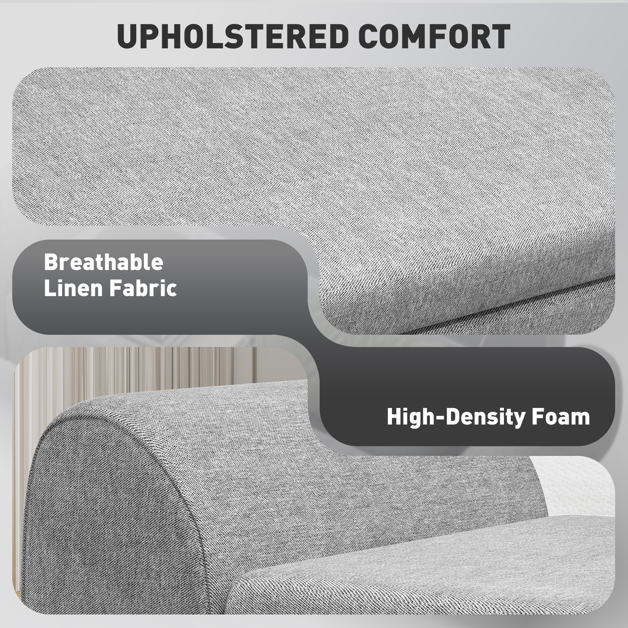 - Material: Linen (100% Polyester), Foam, MDF
