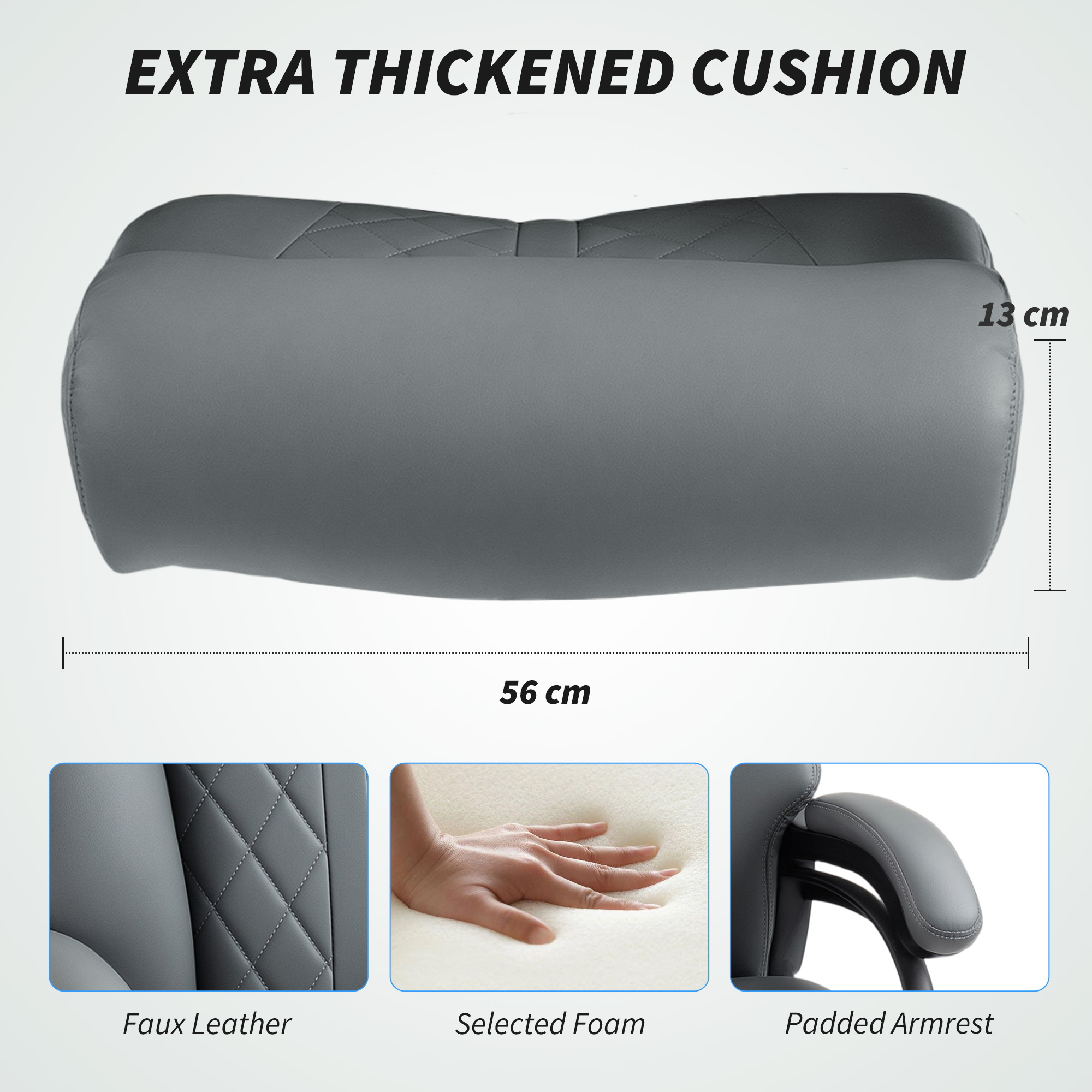 Long hours at your desk can lead to discomfort and fatigue. This HOMCOM faux leather office chair is here to prevent this. With the padded spring seat cushion, you'll be kept comfortable for as long as you work. Its gentle tilting feature allows you to unwind and recharge whenever you want. Complete with five wheels to move it around easily.