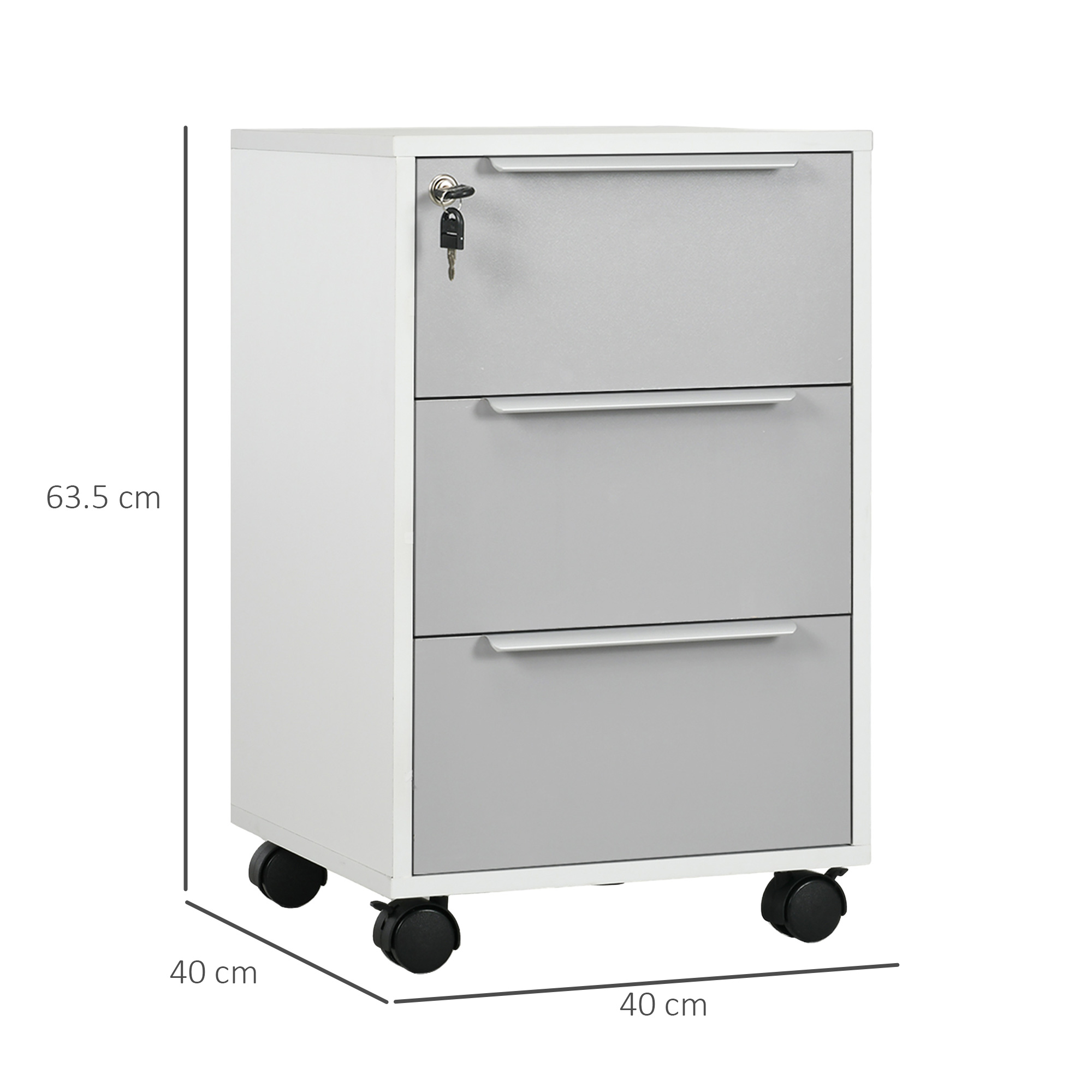 Organise your home office with this three-drawer filing cabinet. The central locking system keeps documents safe and secure: it secures all the drawers at once. The three drawers and offer lots of storage for files, stationary and more. It is a flexible storage solution for home office, study, bedroom or living room.