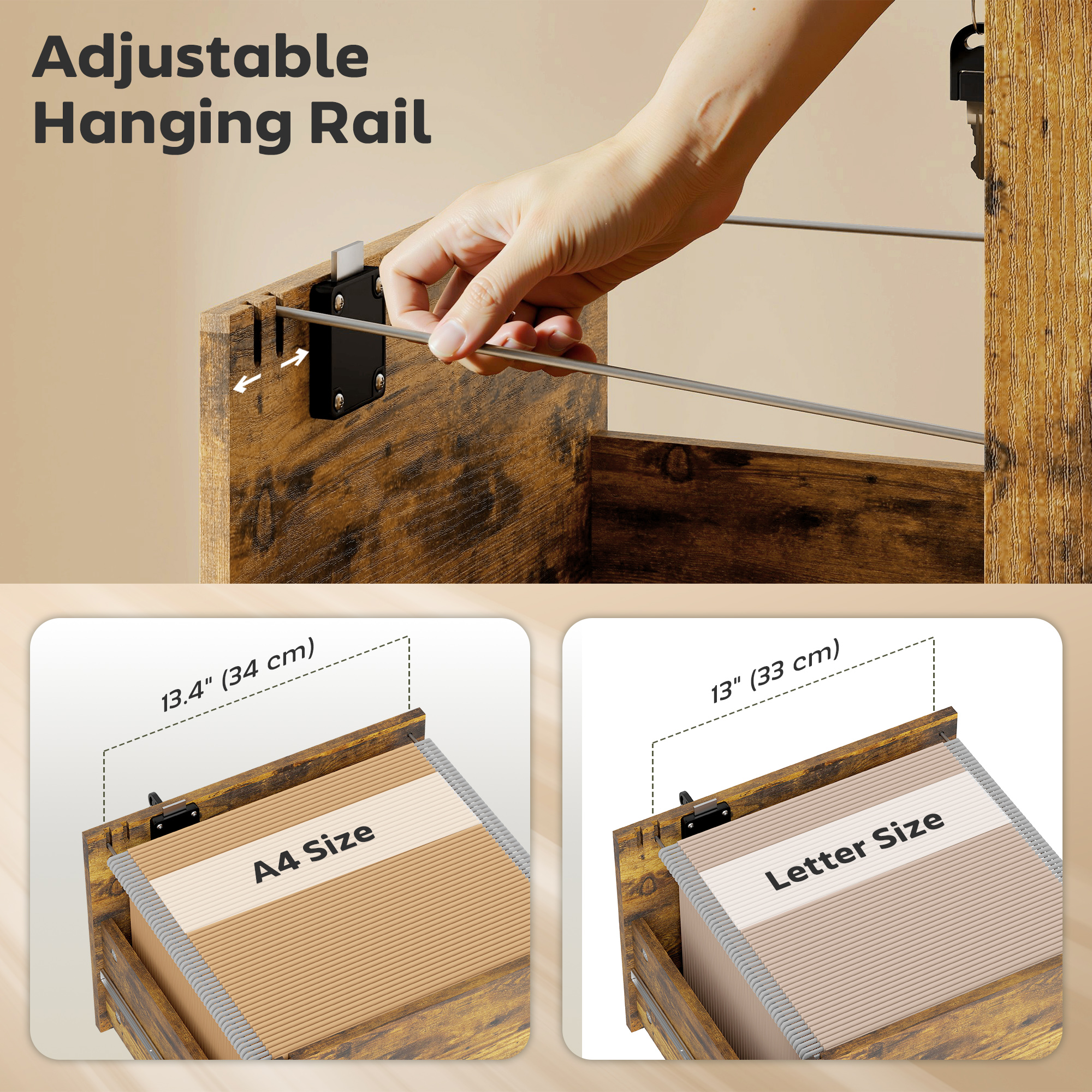 - File Drawer Inner Size: 33W x 33D x 18. 5/24H cm (side panel/hanging height)