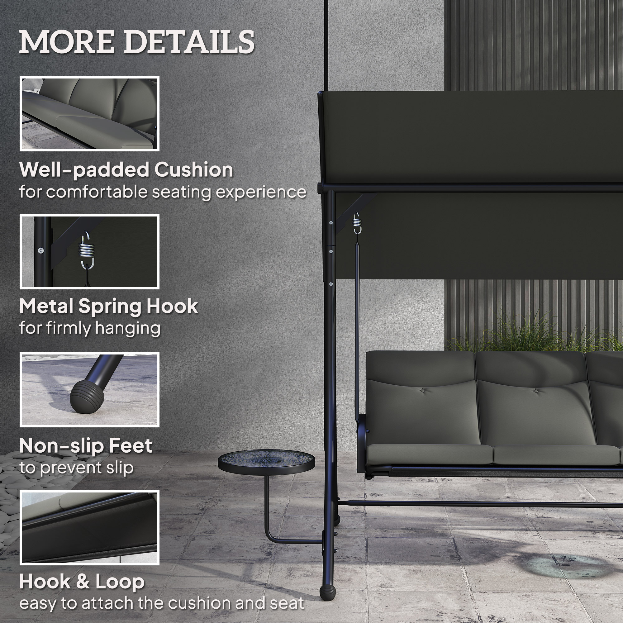 Package Includes: - 1 x 3-Seat Patio Swing Chair