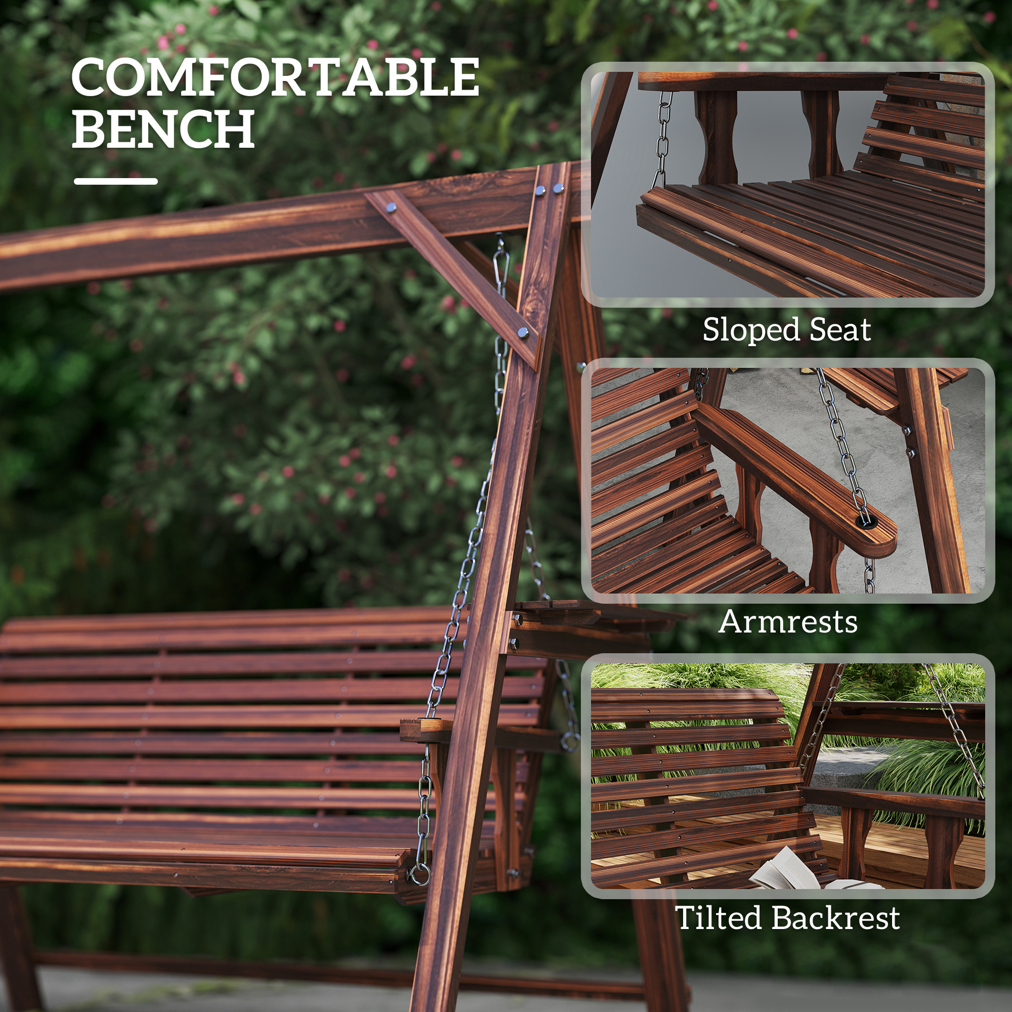 Features: - Three-seater wooden garden swing: a strong and beautiful piece to relax with company