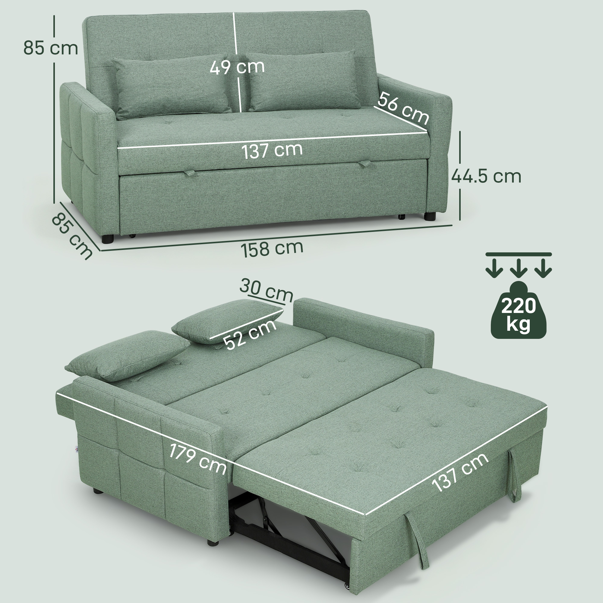 Even in small spaces, you can enjoy comfort at any time of the day - with this HOMCOM sofa bed. The three-part design means you can use it as a sofa, a lounger or bed. Filled with high-density foam, this is comfortable piece; also highly resilient to retain the shape. Wrapped in smooth linen-look upholstery and complete with two pillows.