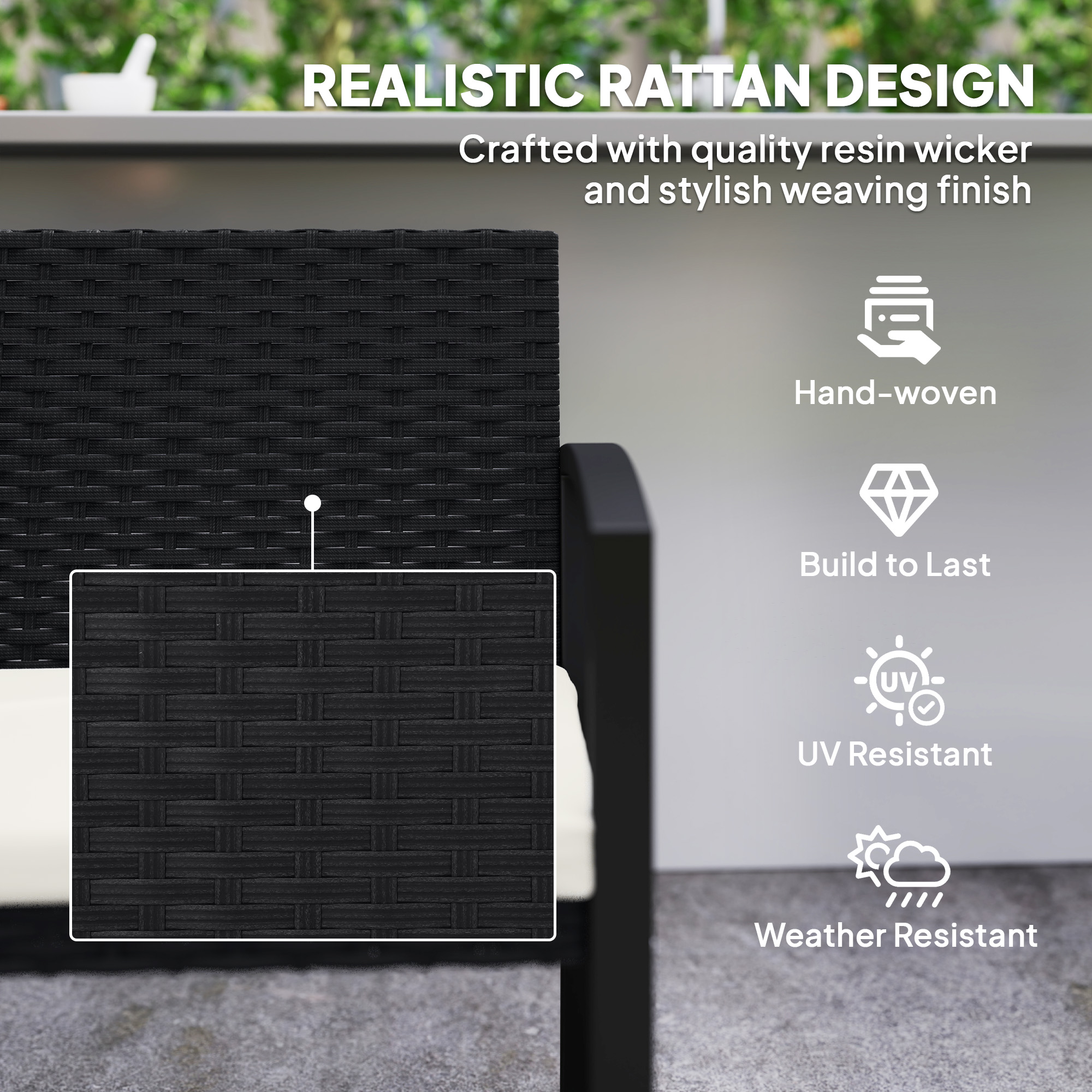 Sit down outdoors in style and comfort, with this Outsunny two seater garden bench. The powder coated steel frame for a strong piece, fitted with a rattan back and seat for garden style. Fitted with a padded seat cushion so you'll sit comfortably, rattan bench is complete with a removable and washable cover for hygiene.