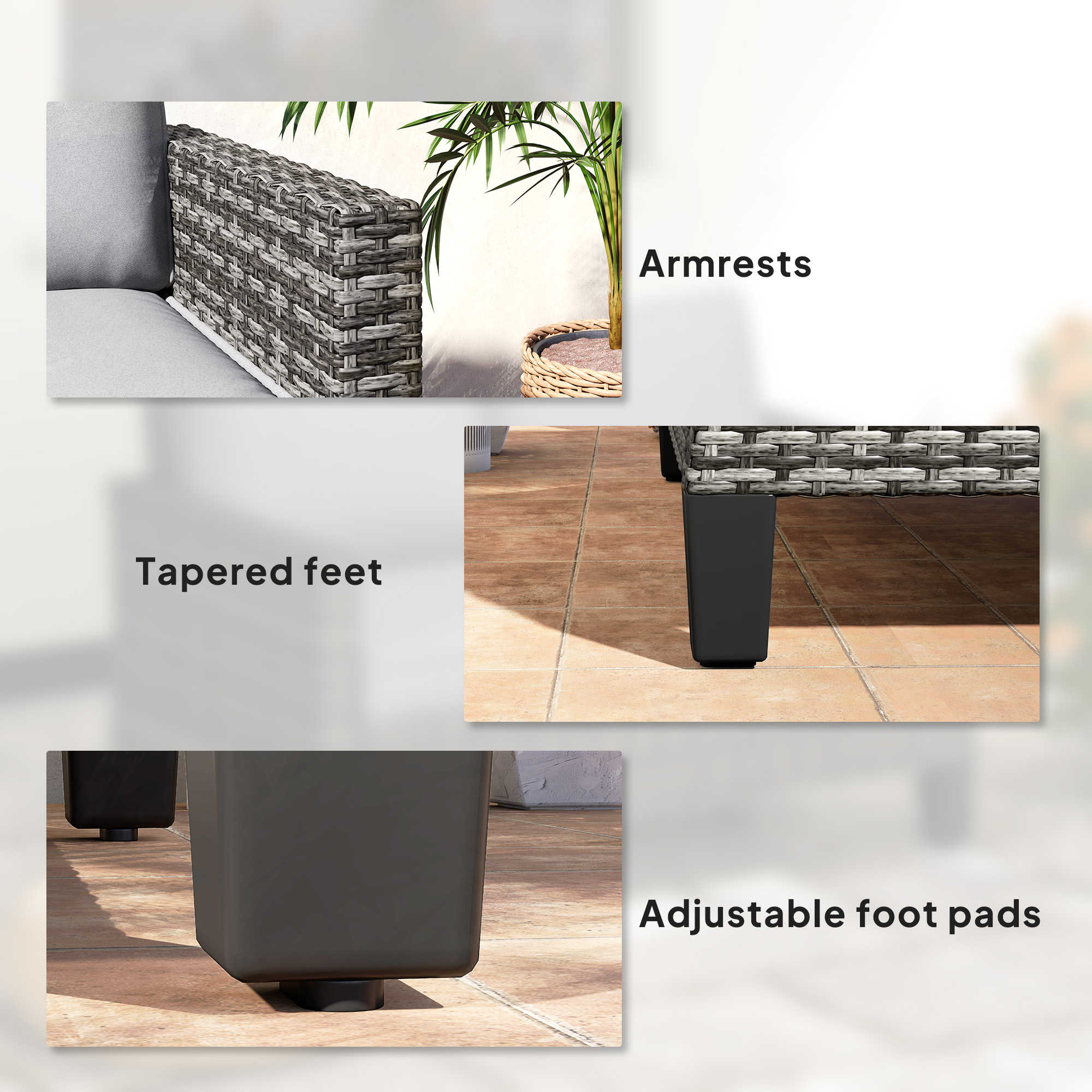 Outdoors times with company, made comfortable with this Outsunny outdoor loveseat. A galvanised steel frame with powder coating means a strong core, wrapped in tough plastic wicker for a protective outer. Thick cushions ensure comfort; patio sofa is complete with adjustable feet so it stands steady and balanced.