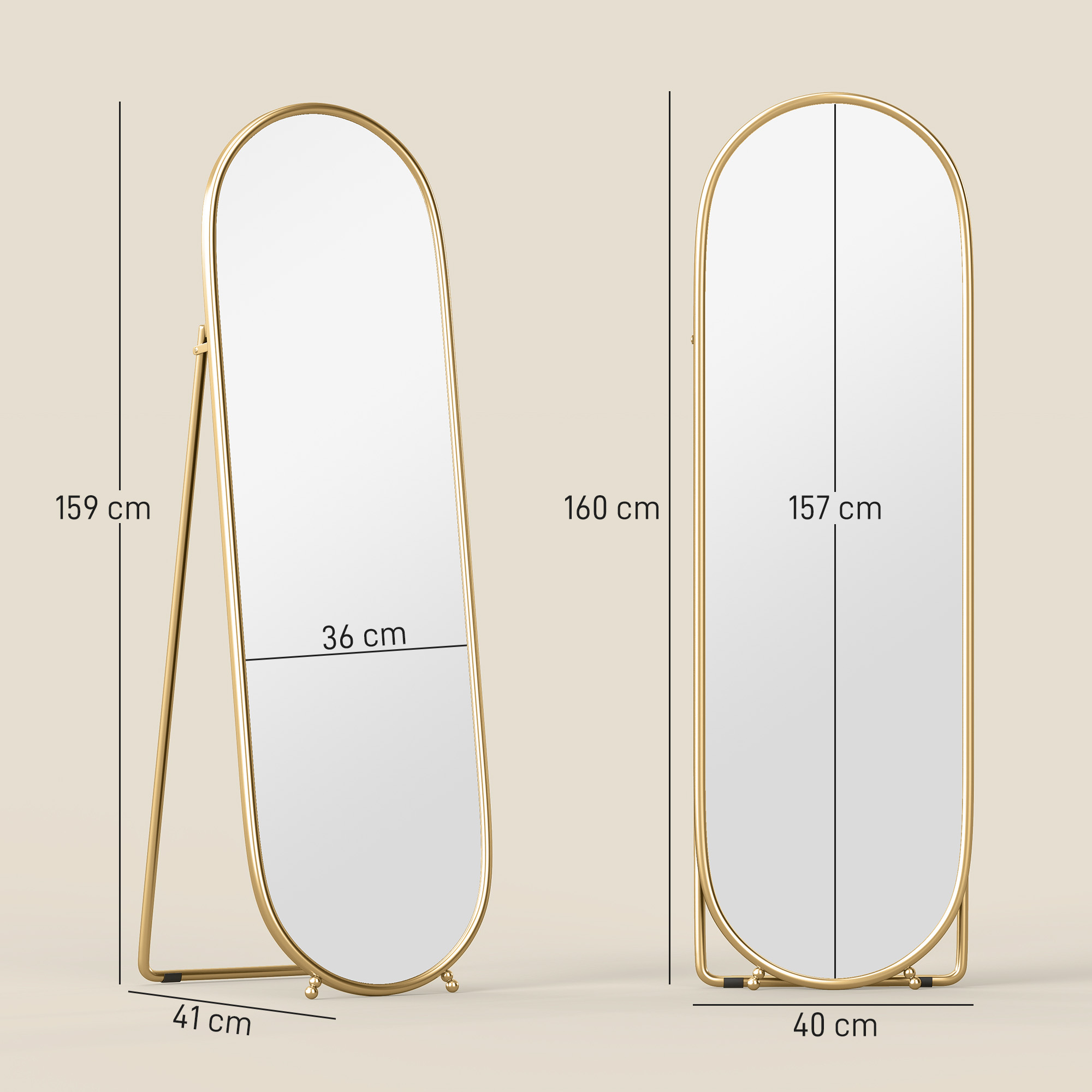 Let the beautiful design of this HOMCOM mirror make getting ready even more enjoyable. Look at the smooth curved shape and coloured frame - bringing a touch of elegance into your space. The design can be used two ways - standing with the back leg or leaning against the wall; however you want it is up to you. The shatter-resistant mirror is clear, so you can see yourself perfectly, from head to toe.