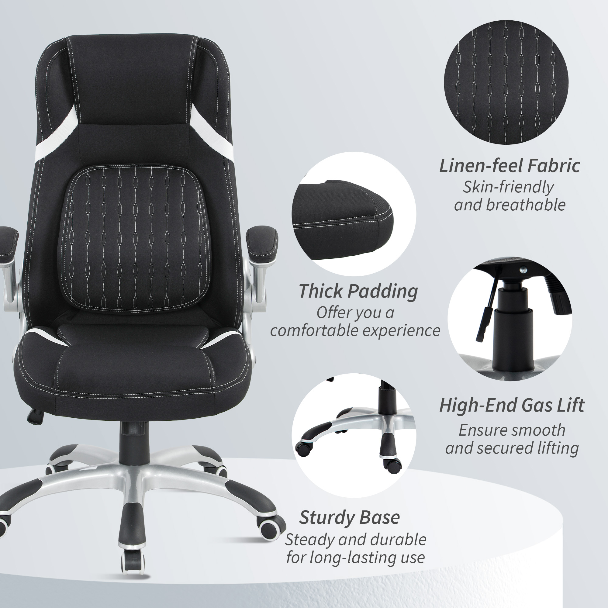 Features: - High back for support, with foam padding and linen-look upholstery for comfort