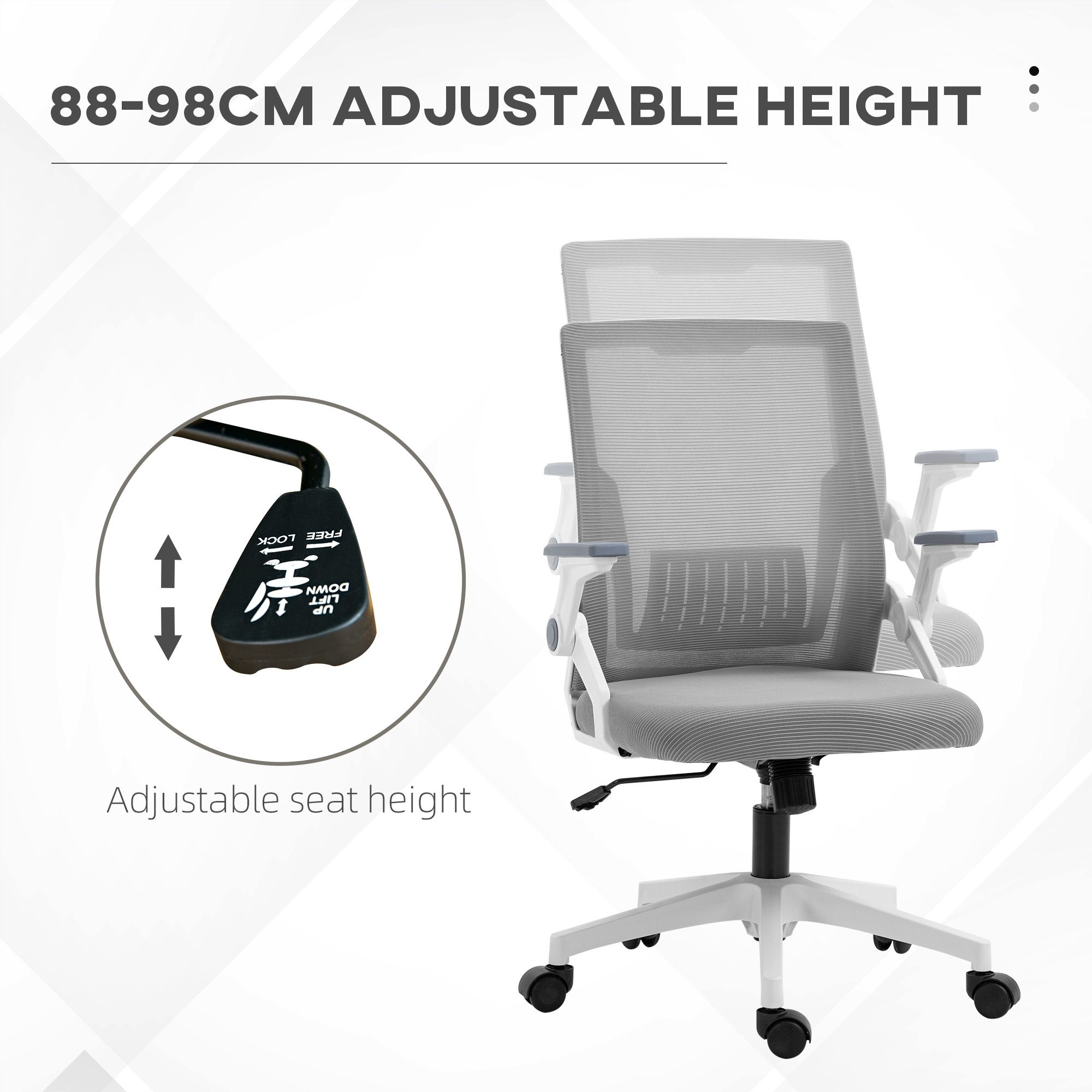 - Flip-up armrests to tuck underneath desk easily