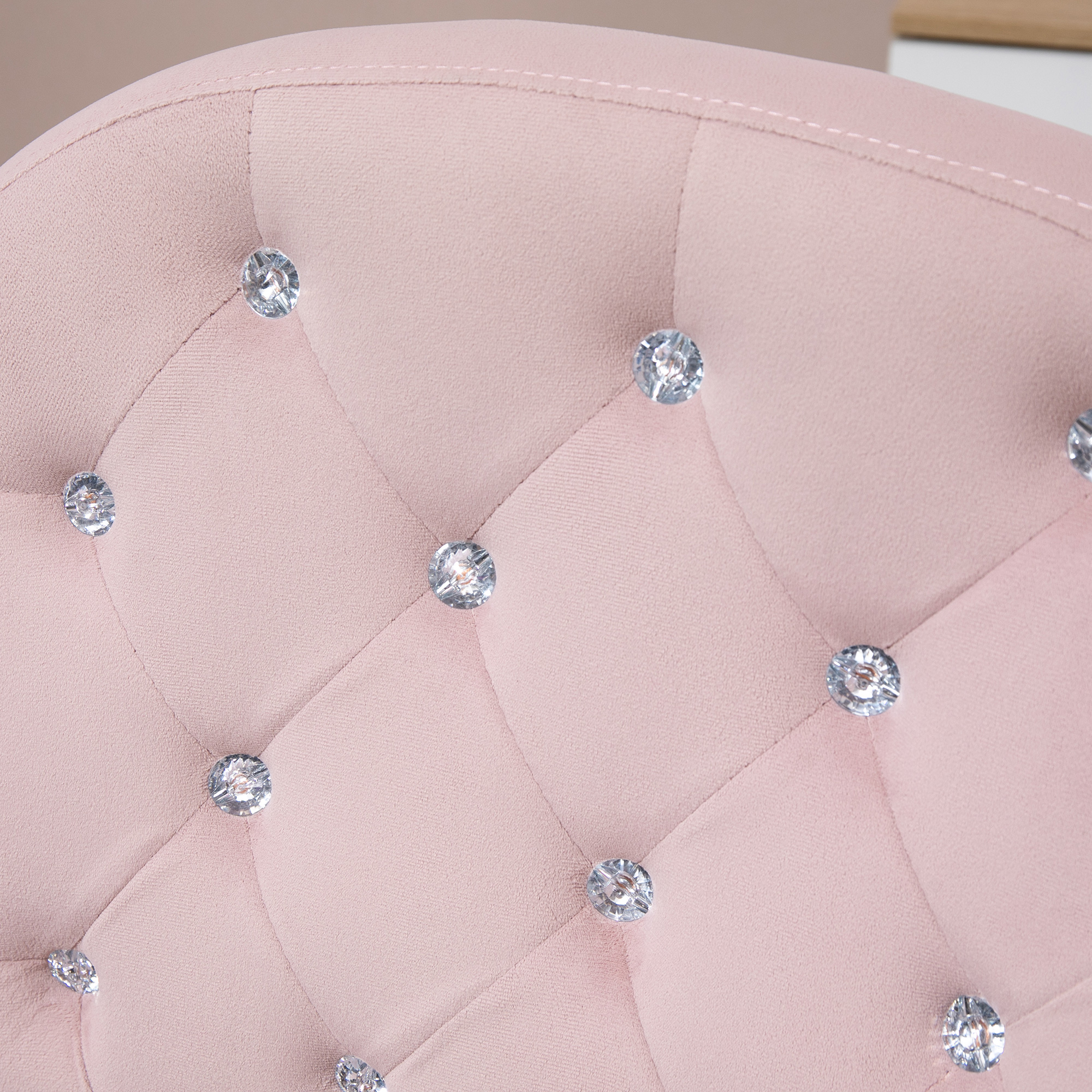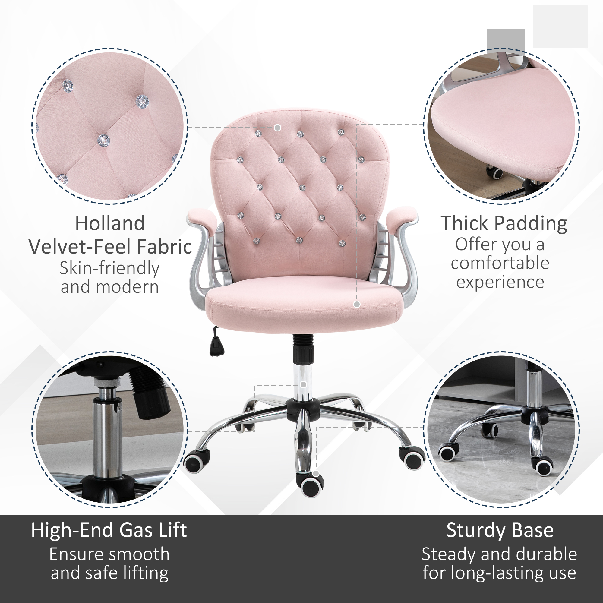 Inject a touch of glam and sophistication into your work day with this pc chair from Vinsetto. Comfortable features include thick padding, a high and slightly-curved back, high armrests and adjustable height. Wrapped in soft velour upholstery, the back is scattered with an abundance of diamantes for top glamour. Completed with five wheels for easy movement. This swivel chair is a sparkling addition to your home office.