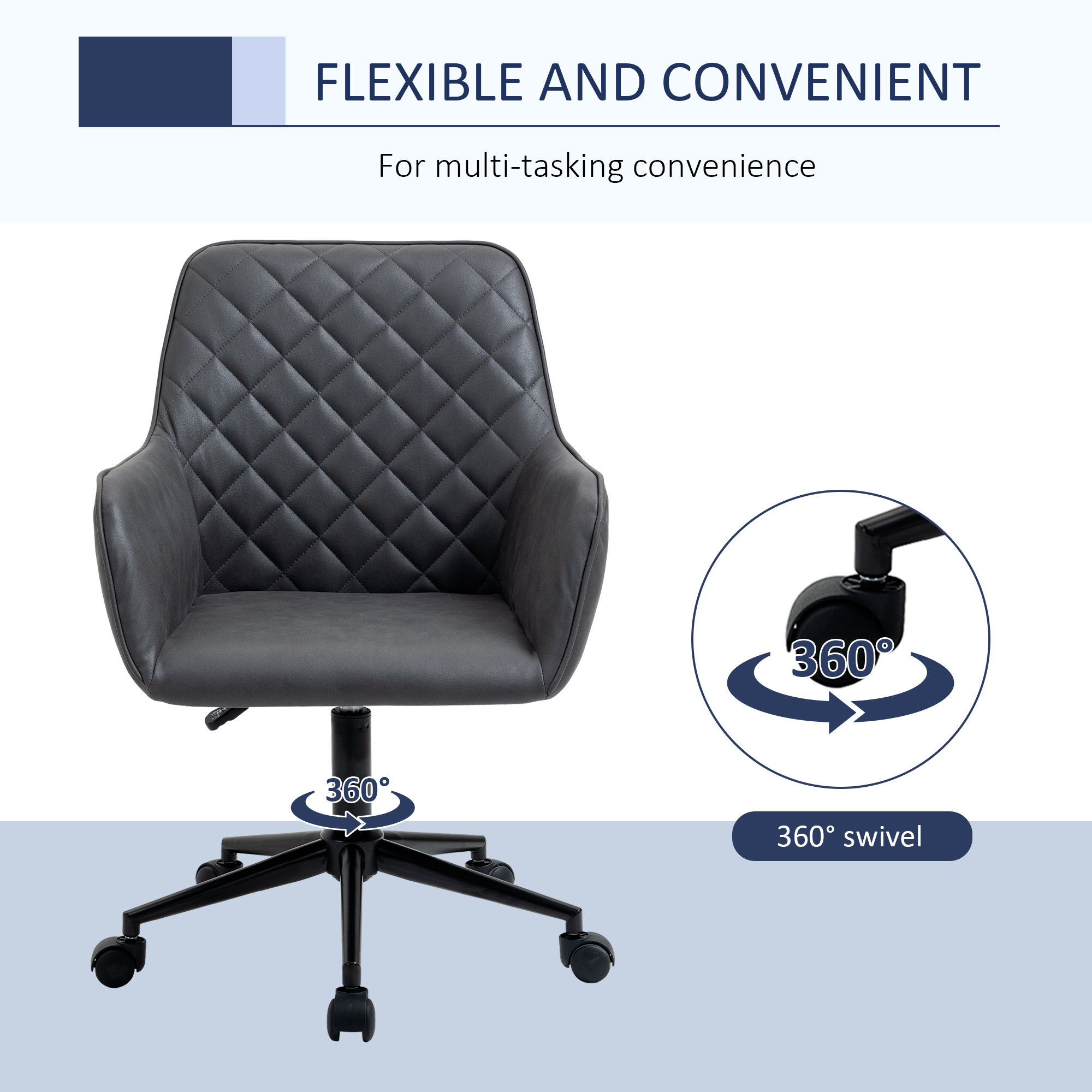 Keeping the style simple and the comfort at its best, this home office chair from Vinsetto is a must for the everyday. Filled with thick sponge for comfort, it's wrapped in leather-look upholstery, so you can work all unbothered. The large seat gives plenty of room for your body, with high arms and back for support. The seat height of the PC chair is adjustable, and it's finished with wheels on the base to move it around easily.