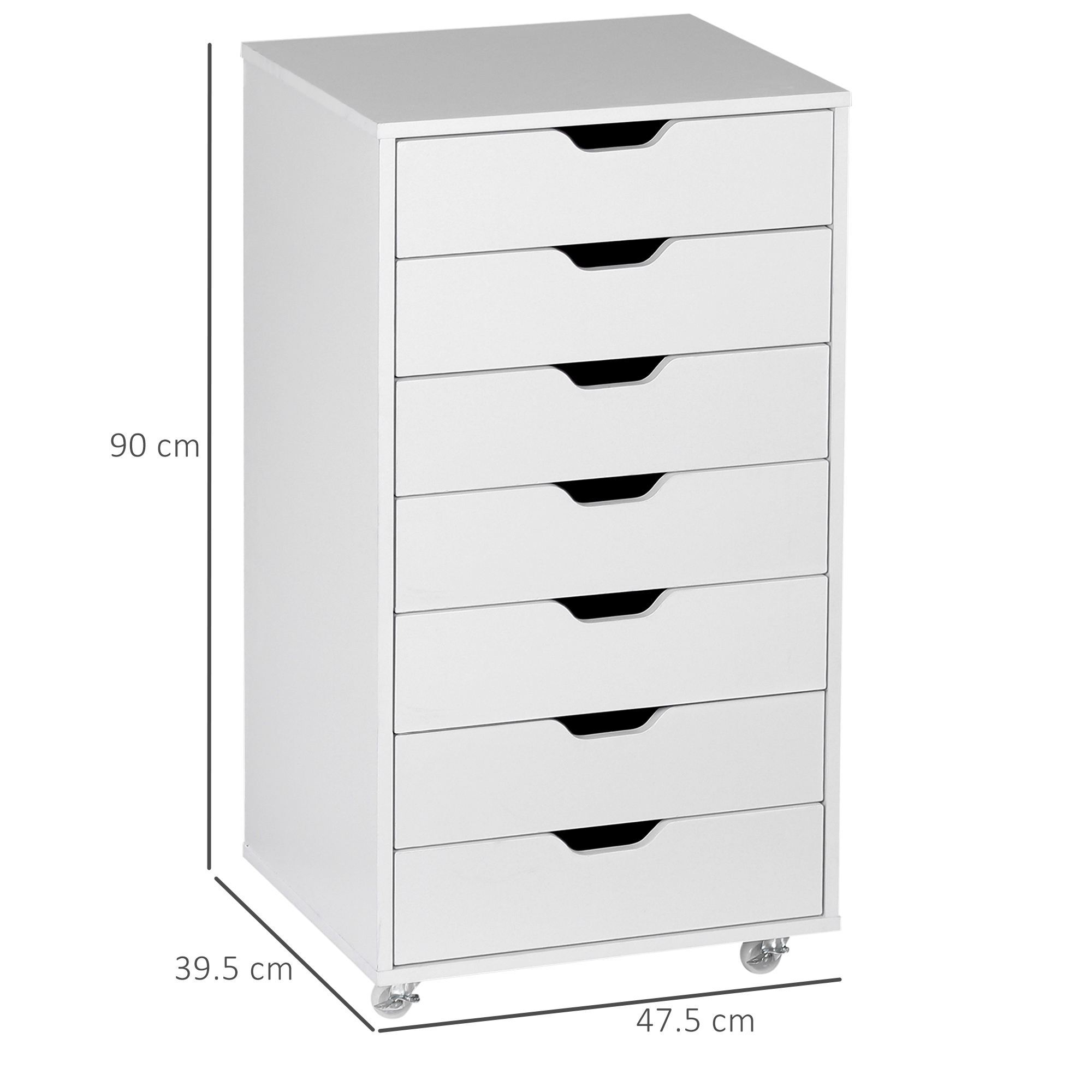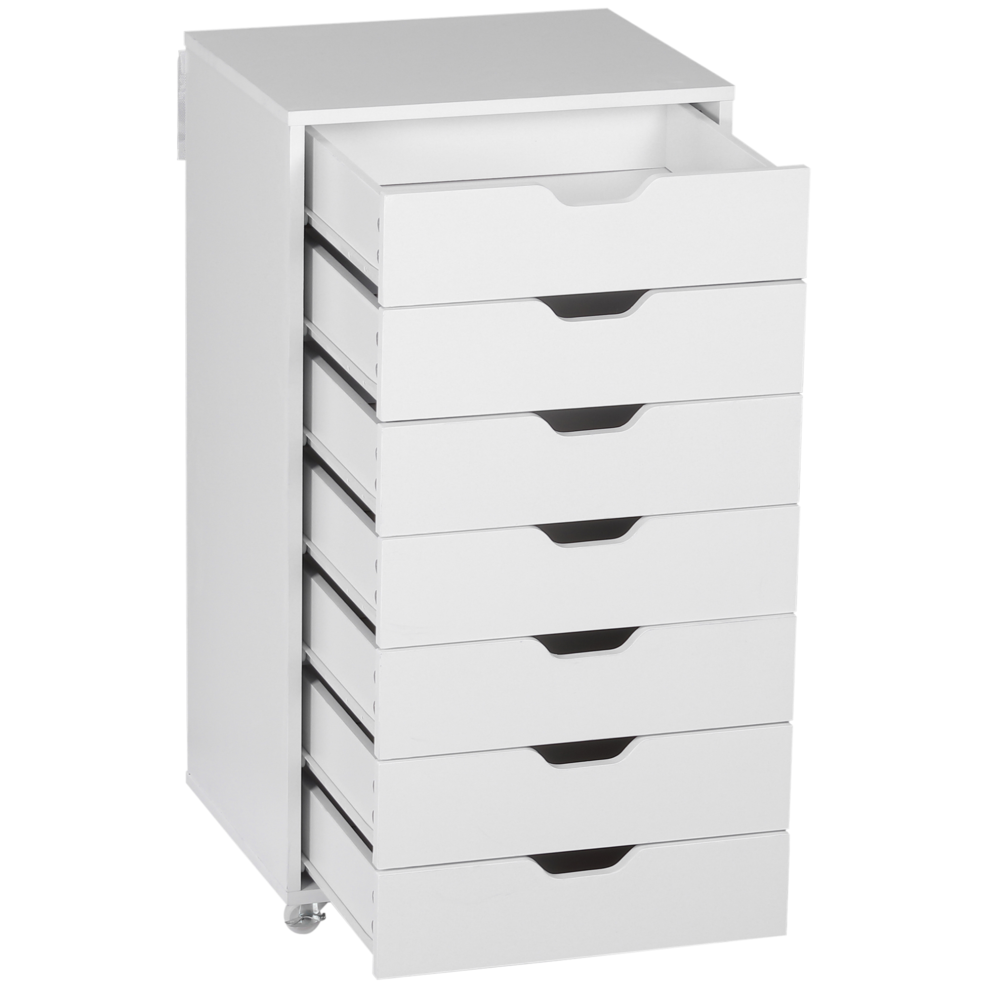 Keep office papers and supplies organised: look to this Vinsetto small filing cabinet. Seven office drawers mean plenty of storage and organisation. Wheels on the bottom to move it around with easy - the brakes keep it standing in place whenever you want. Each drawer opens and closes smoothly - with the groove handles making it comfortable to do so. Comes with anti-tipping straps for safety.