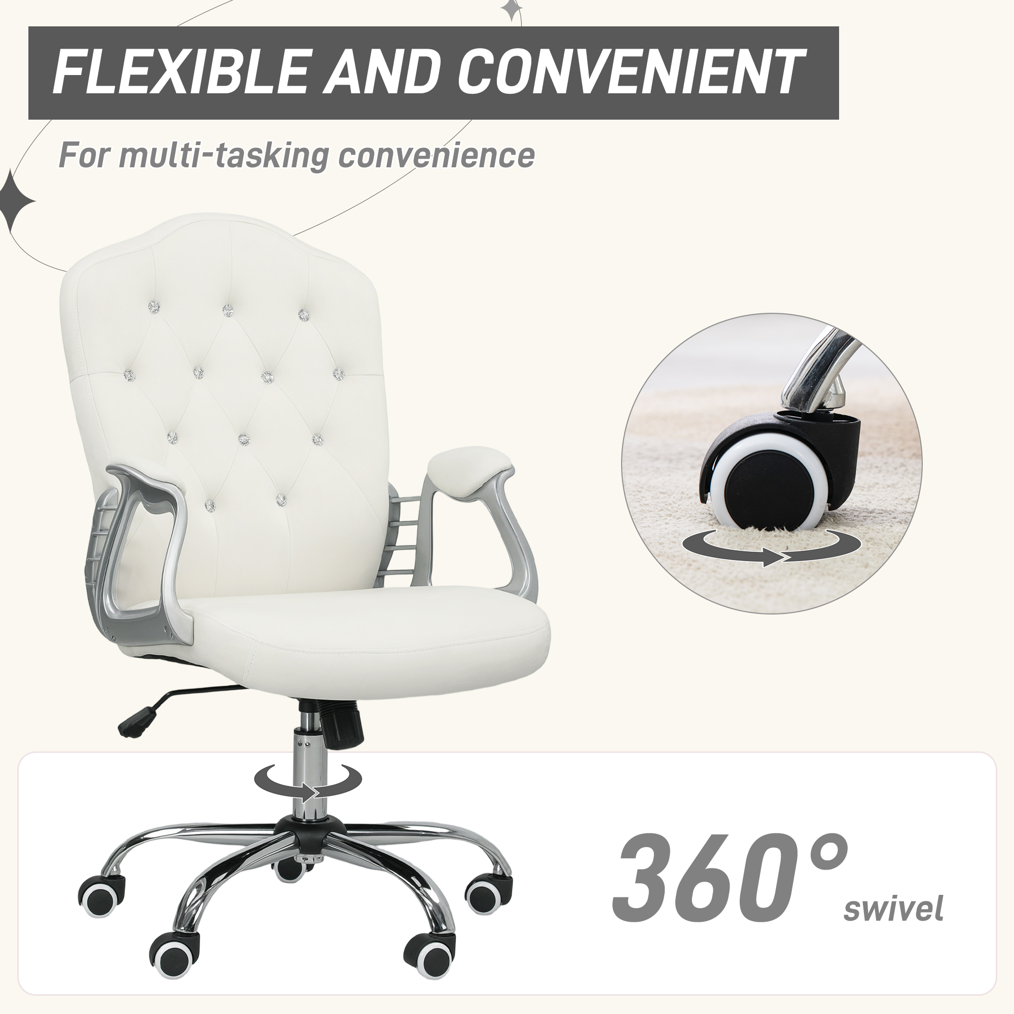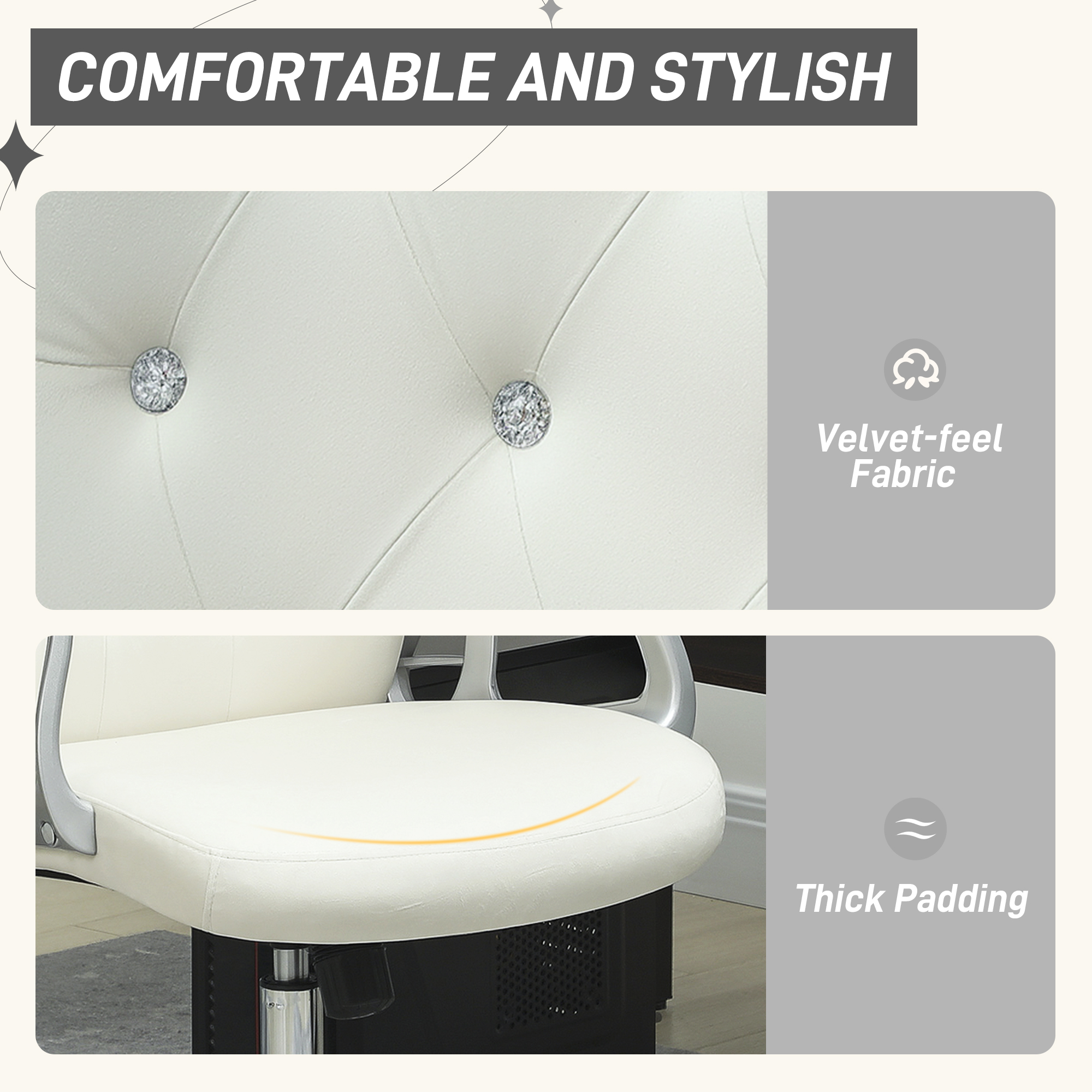 Inject a touch of glam and sophistication into your work day with this Vinsetto computer chair. Comfortable features include the thick padding, the adjustable tension back and armrests. Wrapped in velvet-feel upholstery, the back is scattered with an abundance of diamantes for top glamour. Completed with five wheels for easy movement. This comfortable office chair is a sparkling addition to your home office.