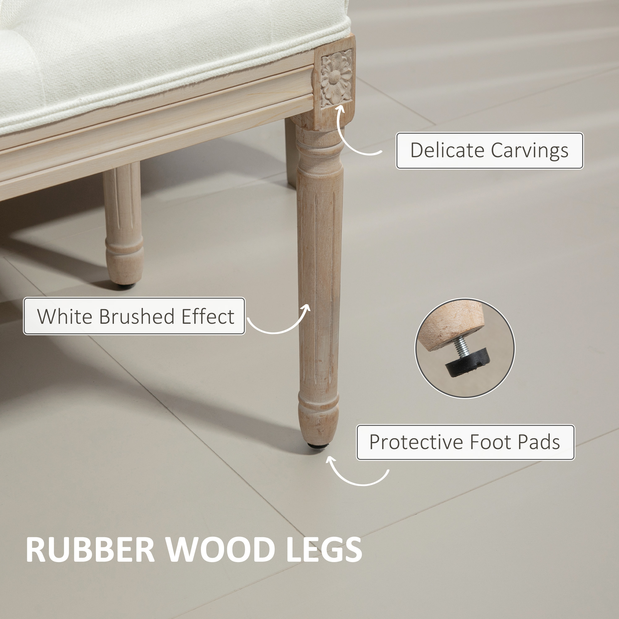 Elegant and practical seating with this HOMCOM bed end bench. The versatile design allows it to serve as a bench throughout the home, for whatever you need. The wooden frame means a strong core, with elegant carving all over to mimic a vintage french style. Fitted with a padded top to sit comfortably.